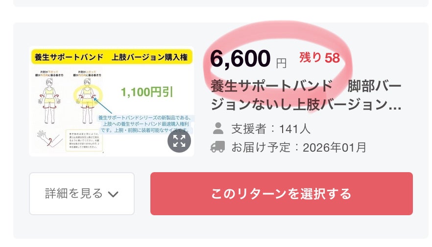 現在、クラウドファンディングに掲載しているものは上腕・前腕・下腿・大腿どれも同じ金額に設定していますので、今後どこで販売されるものよりもお安くなることに。