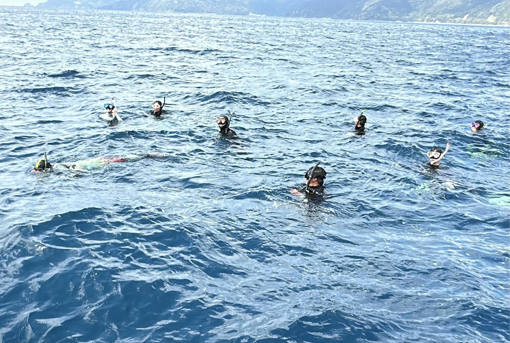 その愛おしい姿は人間と変わらず、母が小鯨を見守る姿は心を打たれます。子育てをちょっとだけ覗かせてもらう『おじゃまします』の気持ちがとても大事なホエールスイムは、大人でも泣いてしまうほど感動します。