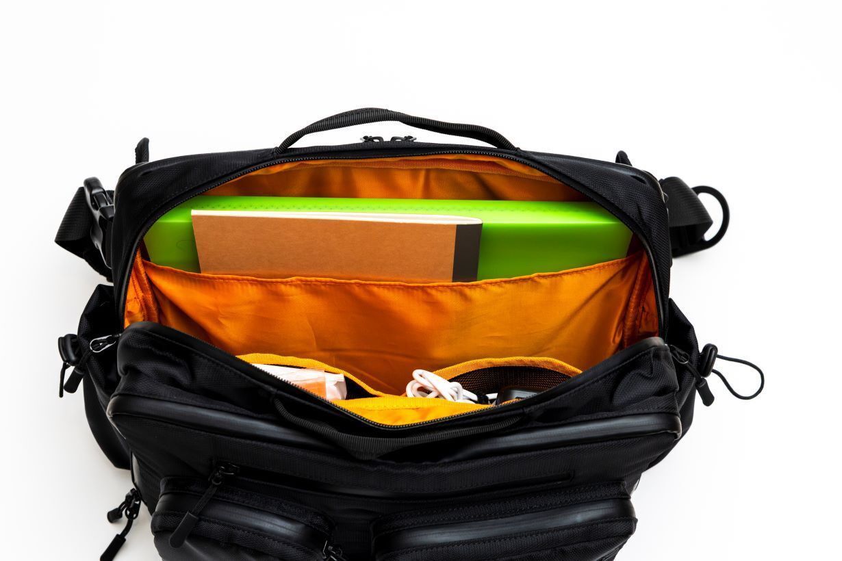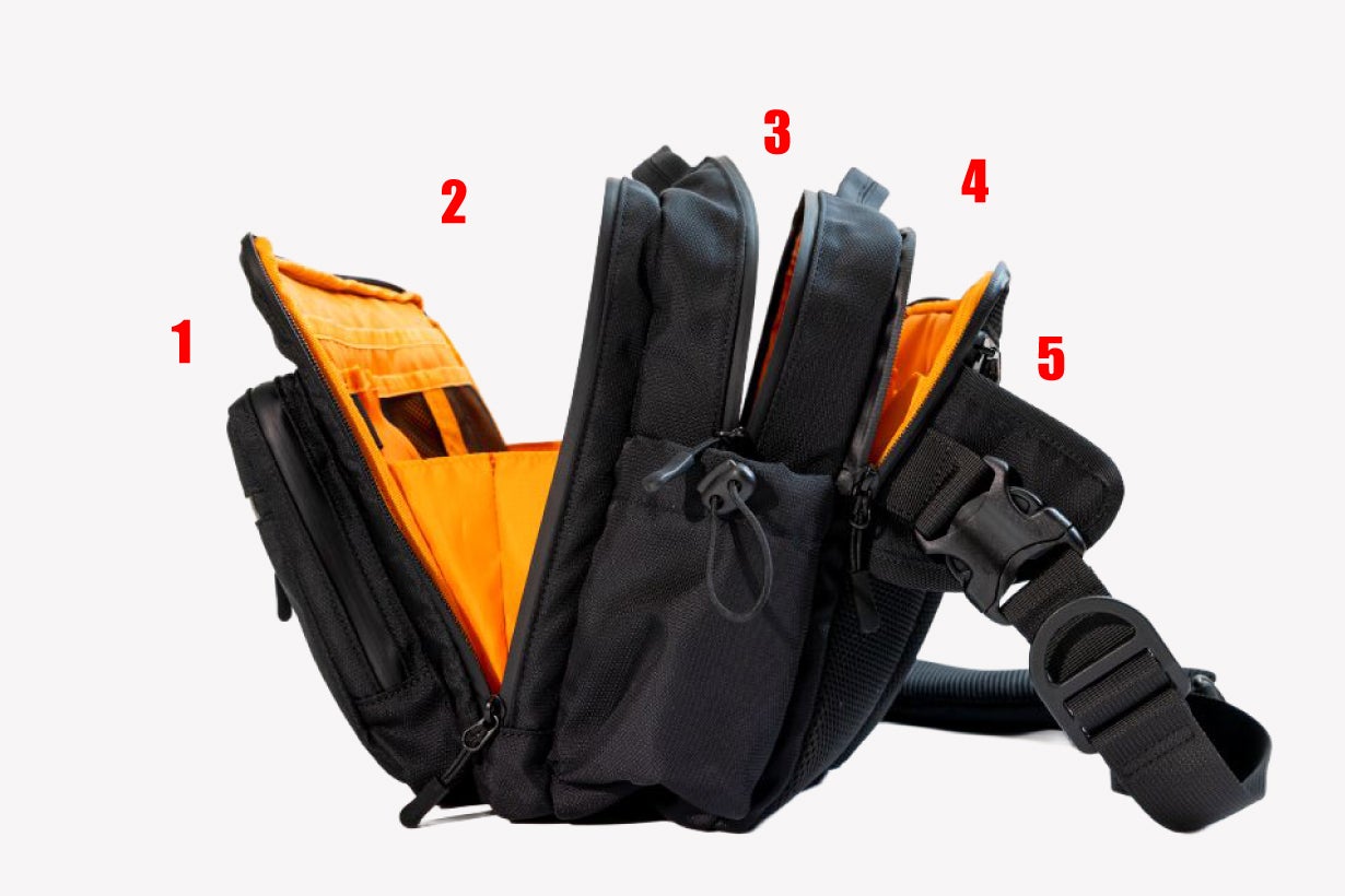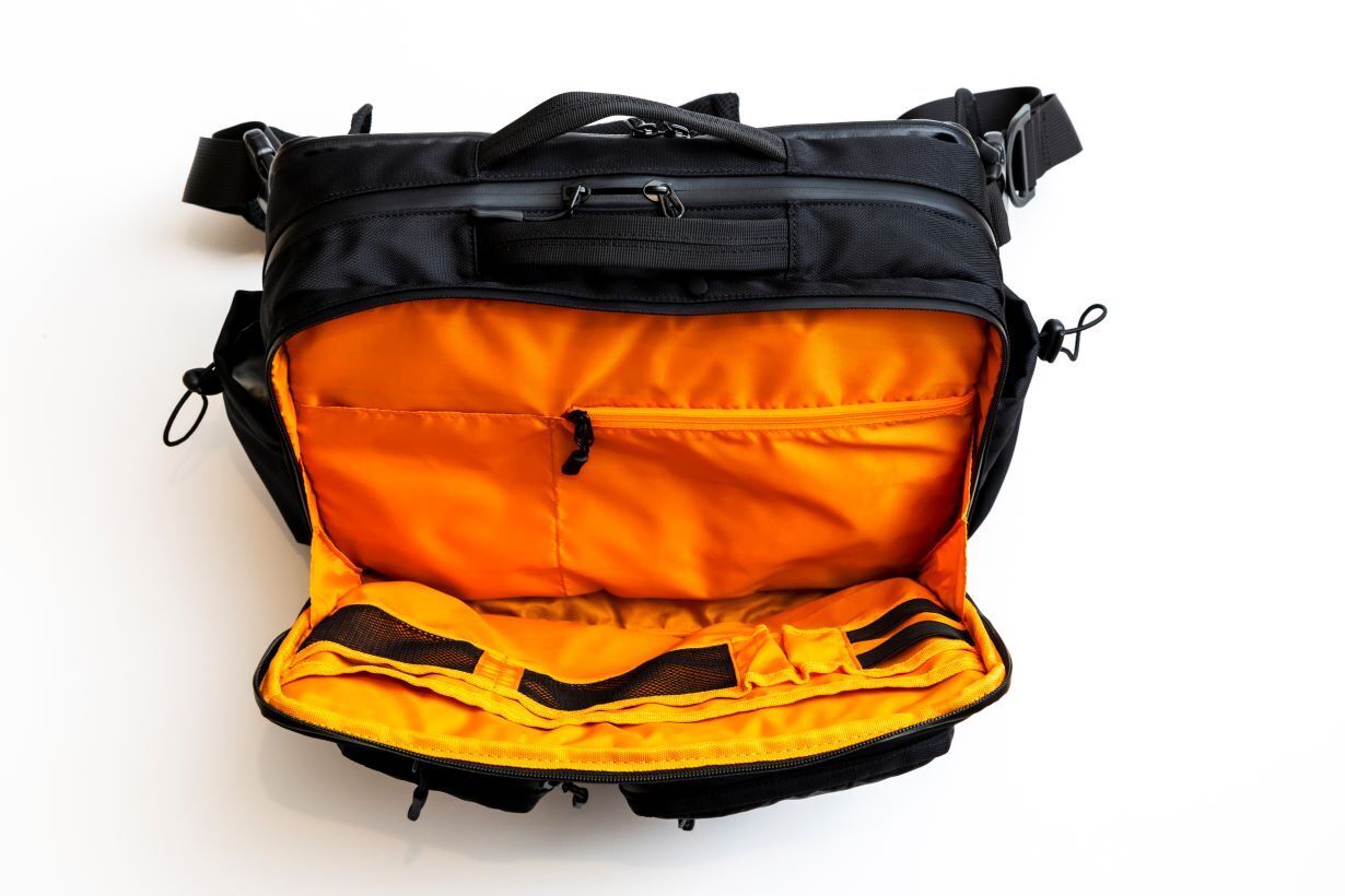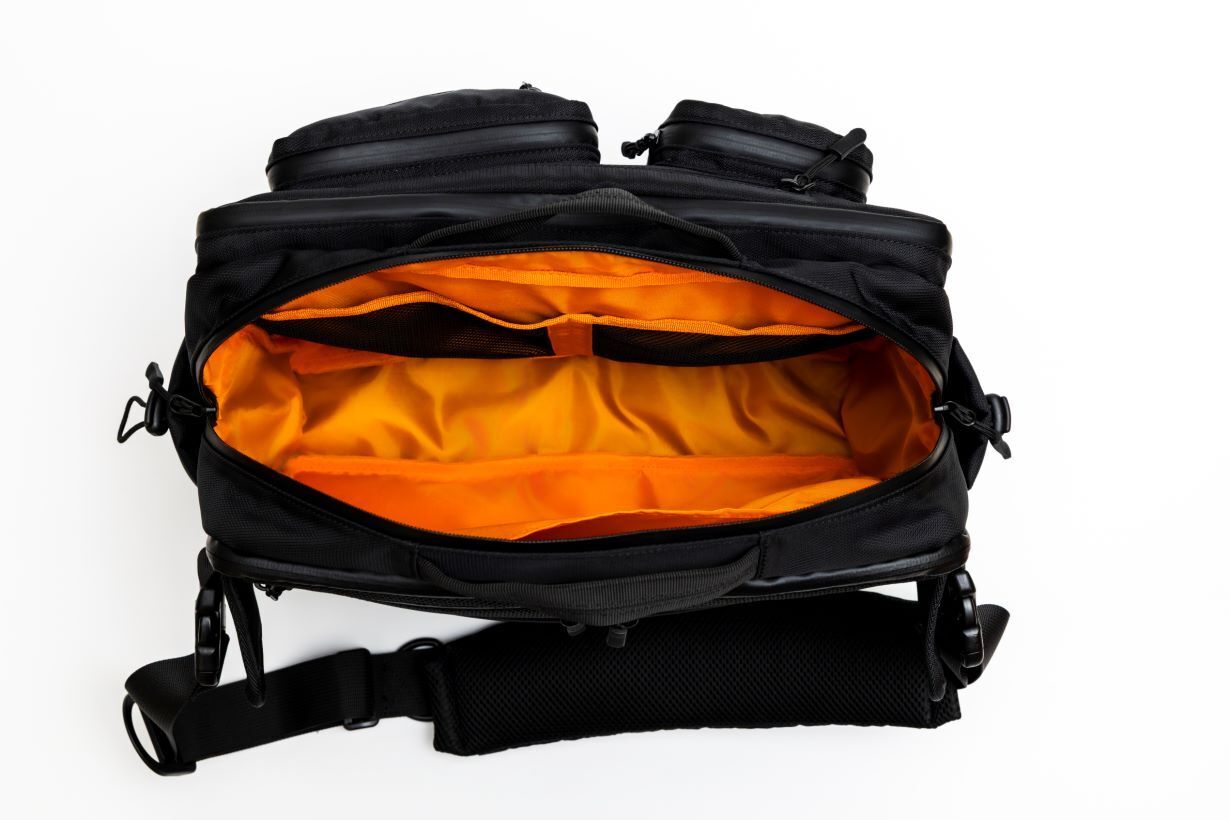 フロント部分の1stエリアには4つのZIPポケットがあり全て止水ファスナーを採用しております。スマホや鍵などすぐに取り出したいものを収納するのに便利です。
