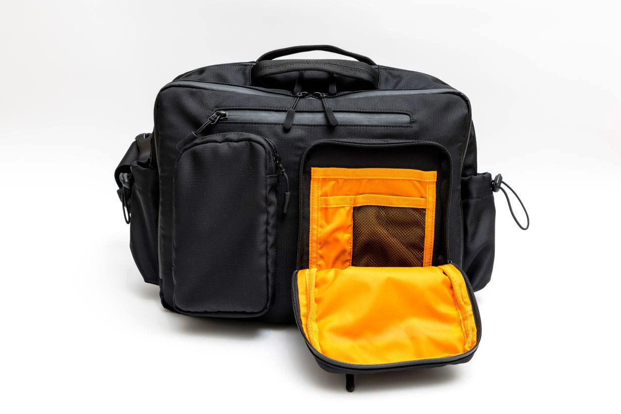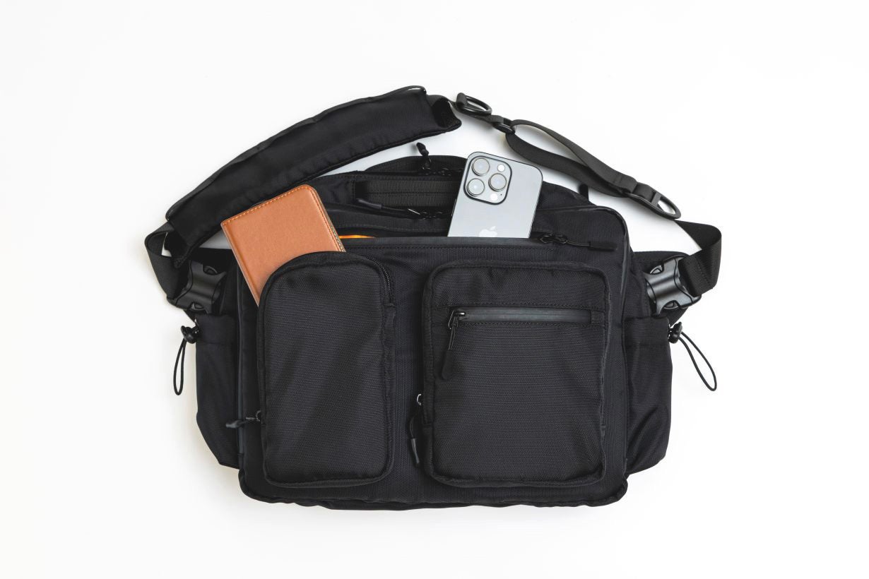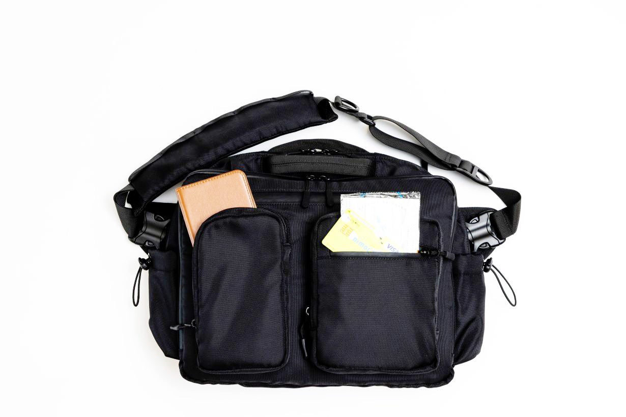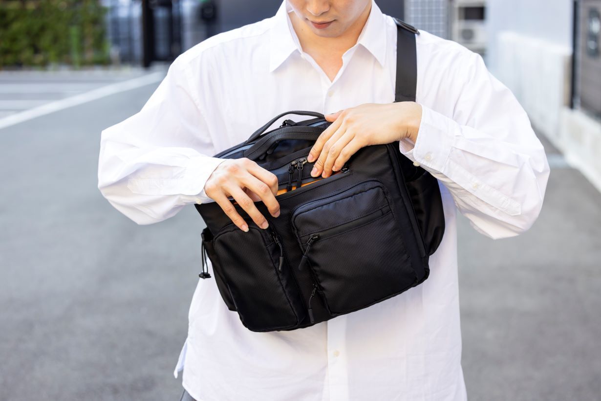 今回のバッグは収納、整理力とプラスαの機能性にいちばんこだわりました。 5つのエリアと21個のポケットで驚きの収納力。細かなアイテムもスッキリ 整理できる大容量バッグです。3WAY仕様でショルダーバッグ、ボディバッグ、 手提げとシーンに合わせて持ち方を自由にチェンジ。通勤、通学、旅行、デイリーまでこれひとつでスマートに対応します。 肩の負担を軽減するショルダーパッド、クロスストラップなど便利な機能も標準装備しております。