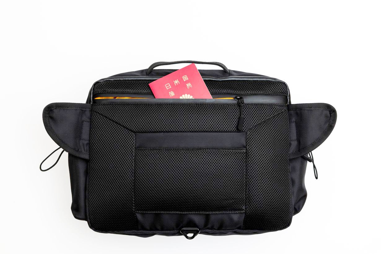 海外旅行時のパスポートや、他の貴重品の収納などに使用できます。 また背面素材は通気性の良いメッシュ素材です。 風通しがよく、熱や湿気がこもりにくい為、特に暑い季節や長時間の使用も快適です。
