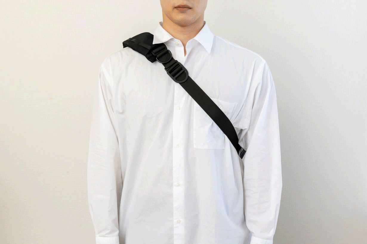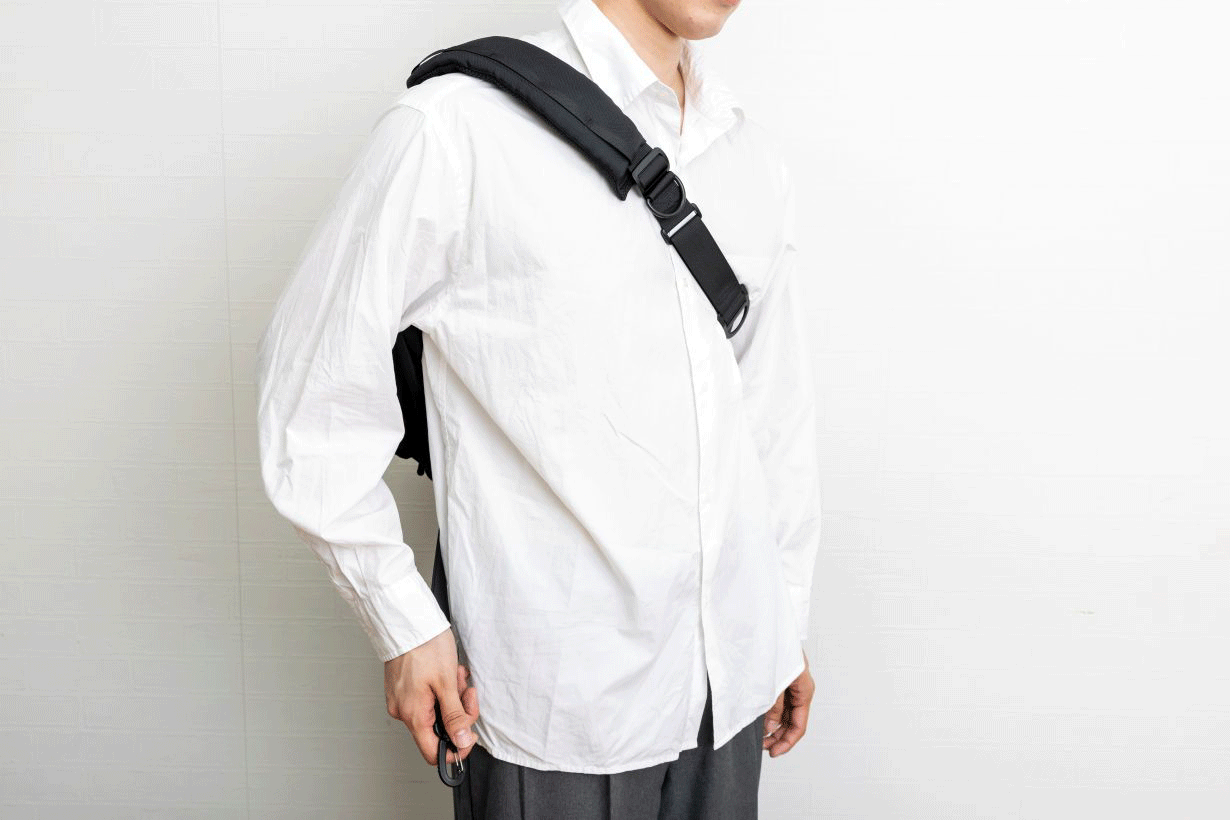 ショルダーベルトを外しショルダーパッドの向きを付け替えることで、左右どちらでも不便なく掛けられます。