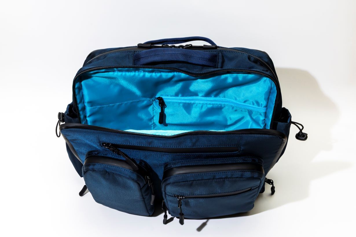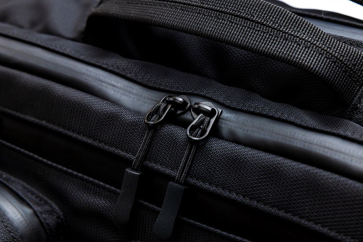 全てのファスナーにおいて止水ファスナーを採用しています。 急な天候変化にも大切なスマホやPC、ガジェット類などを慌てずに収納できます。 各エリアのファスナーは横からも縦からも開閉しやすいWファスナーにしました。