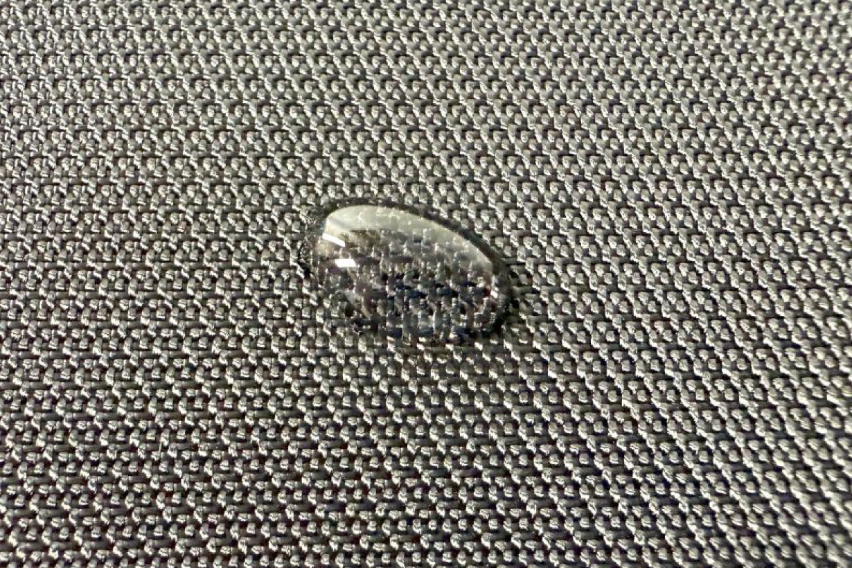 少し光沢がある素材で型崩れしにくく、紫外線にも比較的に強く色落ちがしにくい 素材です。 また撥水加工を施していますので、雨や汚れをしっかりガードします。 完全防水ではございませんので強い雨や長時間の濡れには 浸水する可能性があります。濡れた場合は軽く拭き取ってください。