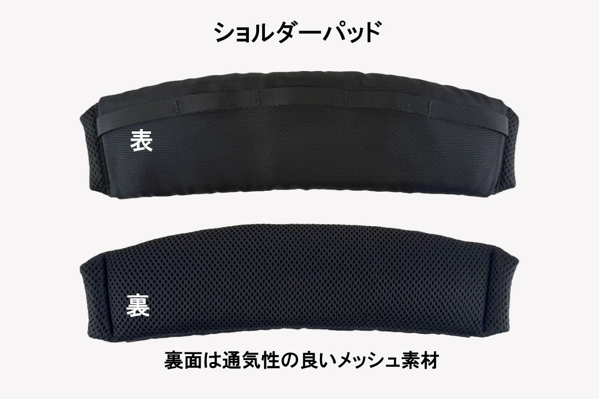 大容量バッグだと荷物をたくさん入れてしまって肩が痛くなる! そんなお悩みを解消する為にショルダーベルトにショルダーパッドを取り付けました。 クッション性もあり肩の負担を軽減し、着脱可能ですので用途に応じてご使用いただけます。