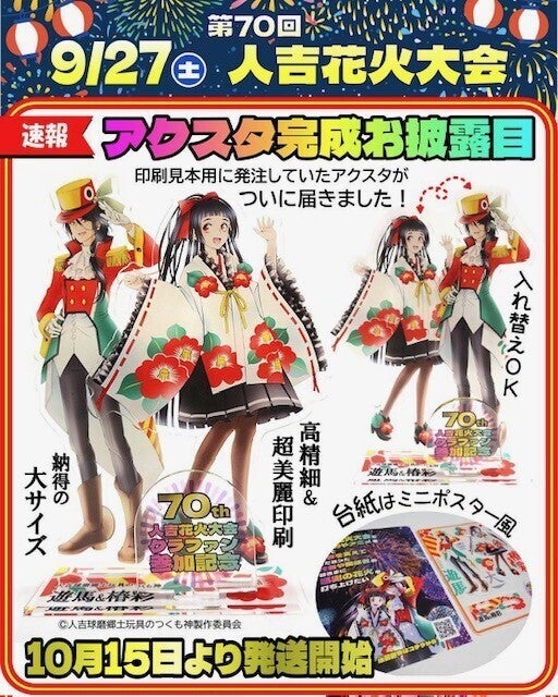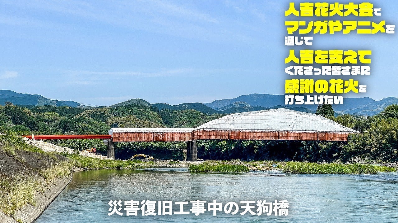 そこで――マンガやアニメを使って人吉の復興を支援してくださった作者や関係者の皆さまに「ありがとう」を夜空いっぱいに届けたい。そんな想いから、2025年8月15日に開催される 人吉花火大会 でマンガやアニメの作者や関係者の皆さまへ感謝を込めた“花火”を打ち上げるクラウドファンディングを立ち上げました。