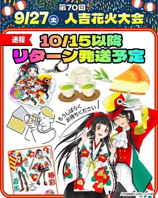 8月22日(金)に開催延期されていた人吉花火大会が台風発生の為9月27日(土)に再延期になりました。再延期に伴いクラウドファンディングのリターンの発送が10月15日以降となりますのでご理解、ご了承ください。皆さまが楽しみにしていただいている花火大会。2度ズレ込んでしまいましたが三度目の正直!!今度こそ人吉の夜空に打ち上がるのをもう暫くお待ちください。