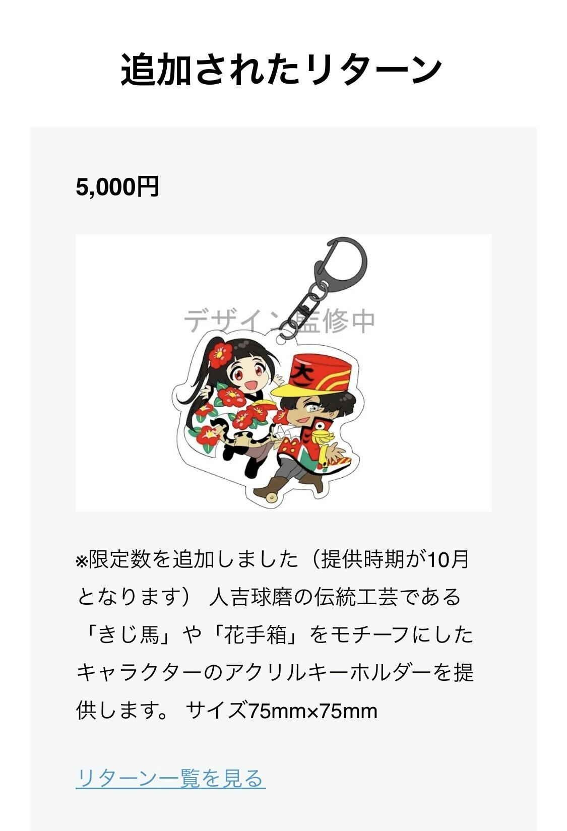 皆様からの温かい応援と、ご支援により5,000円のリターン品として用意しておりましたアクリルキーホルダー30個が完売!!