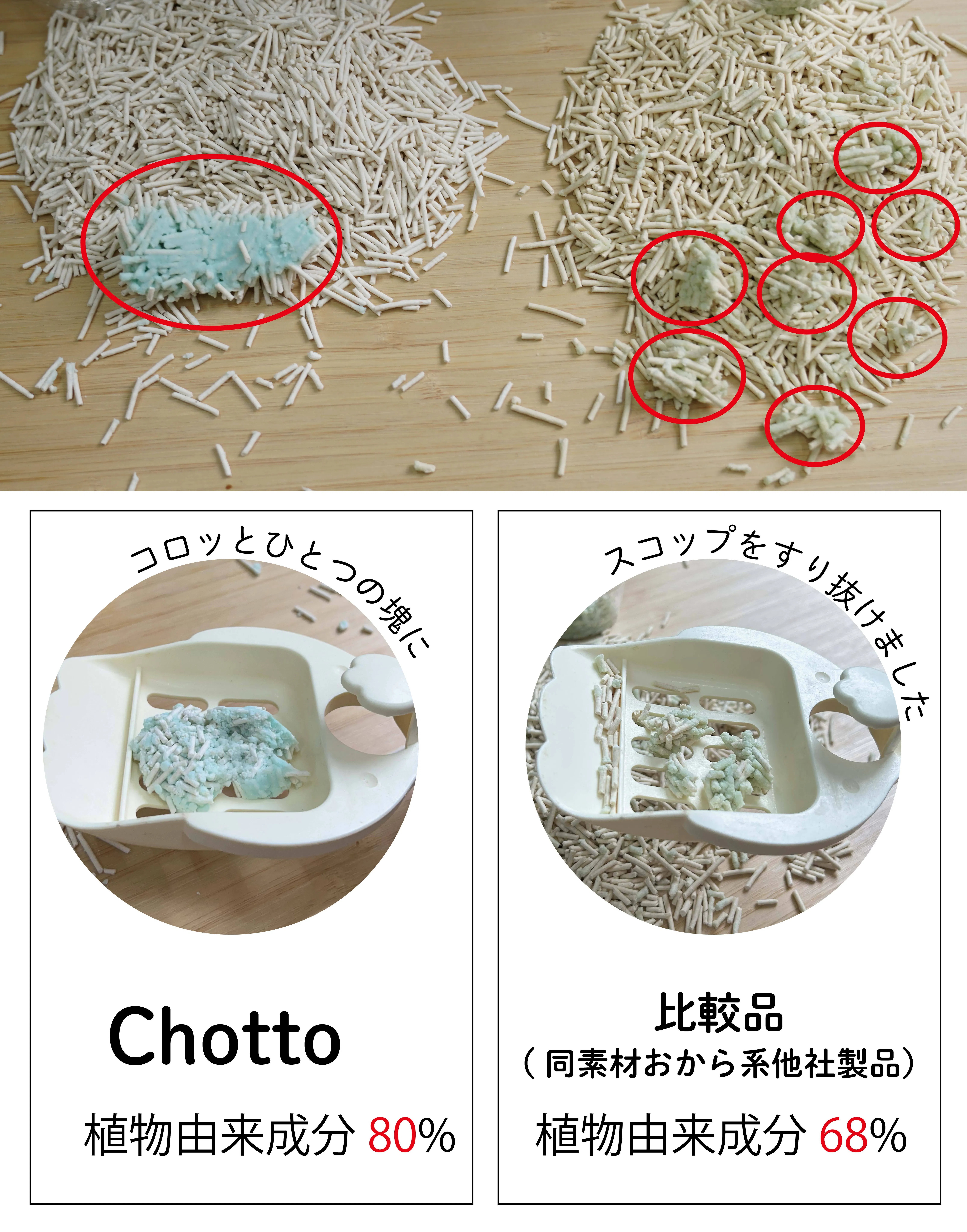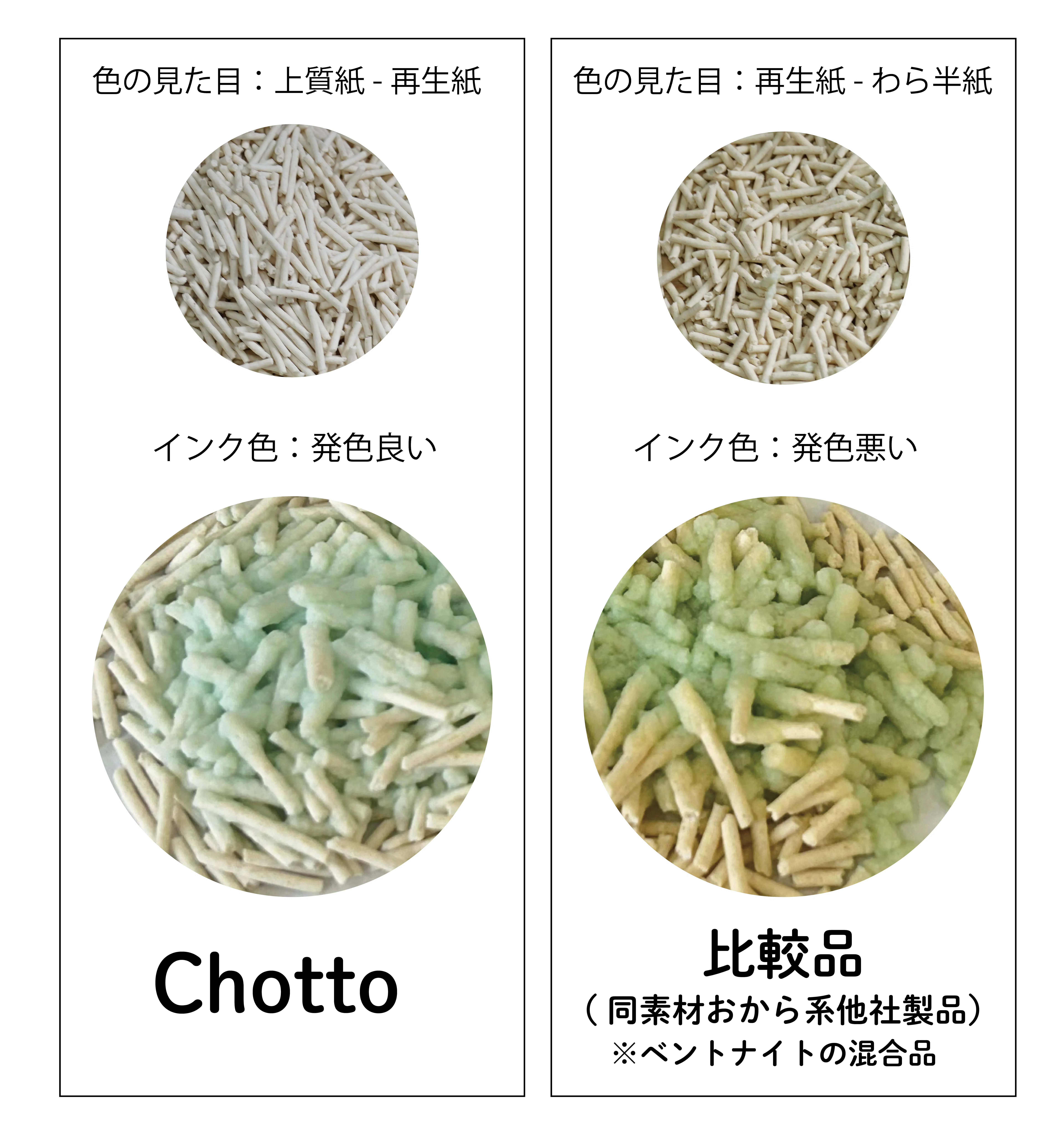 こうして、「Chotto」は見た目では分からない“本質的な違い”を持つ、ワンランク上のおから系猫砂として誕生したのです。