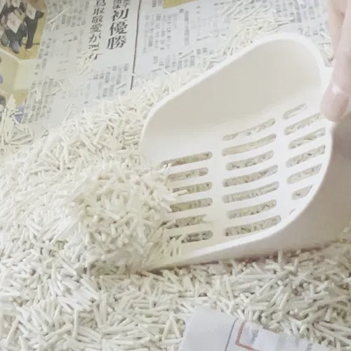 ②おしっこを吸収して猫砂が固まった後、排泄物と固まった部分をスコップなどで取り除きます。