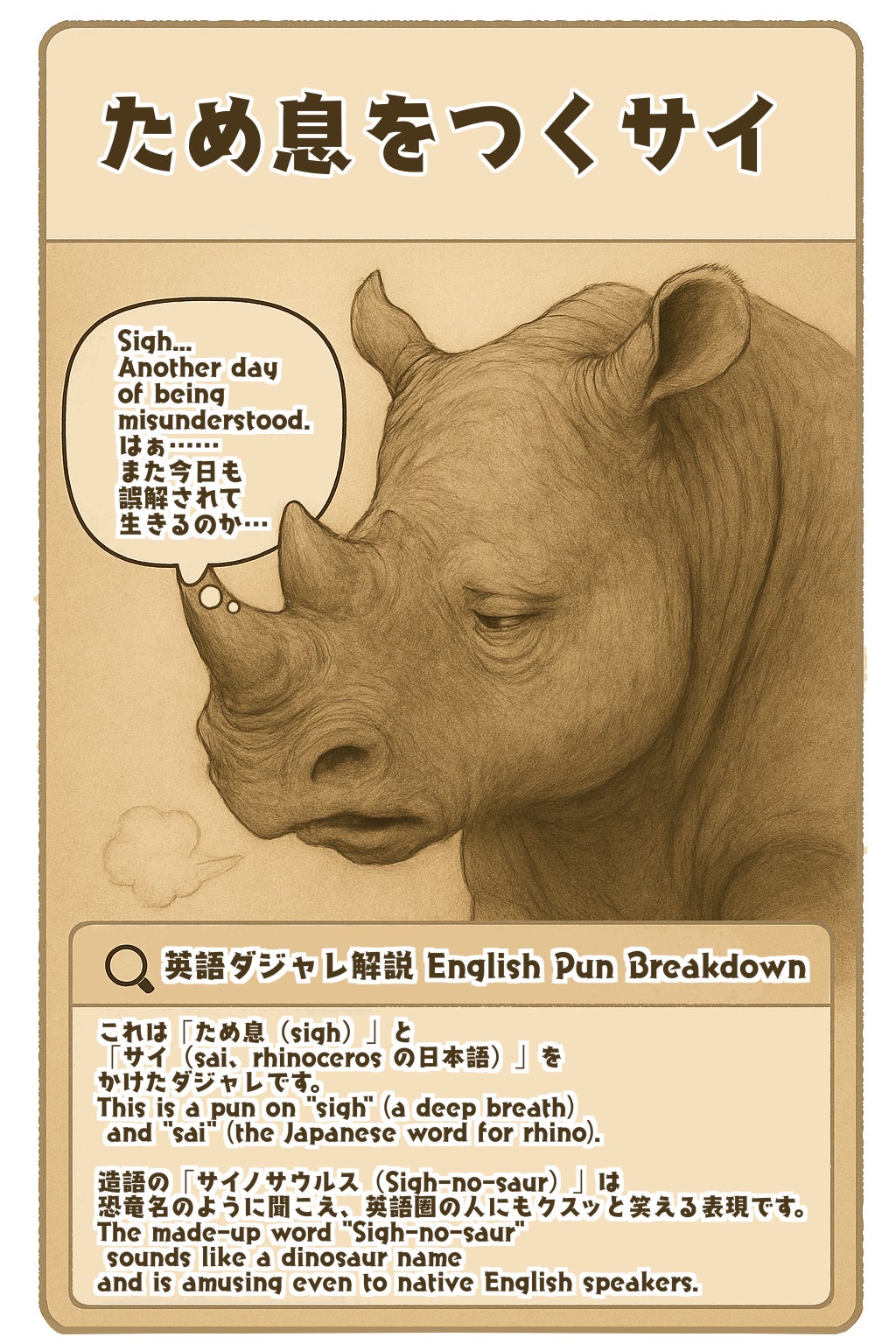 こちらは「ため息をつくサイ(sigh+サイ)」という、