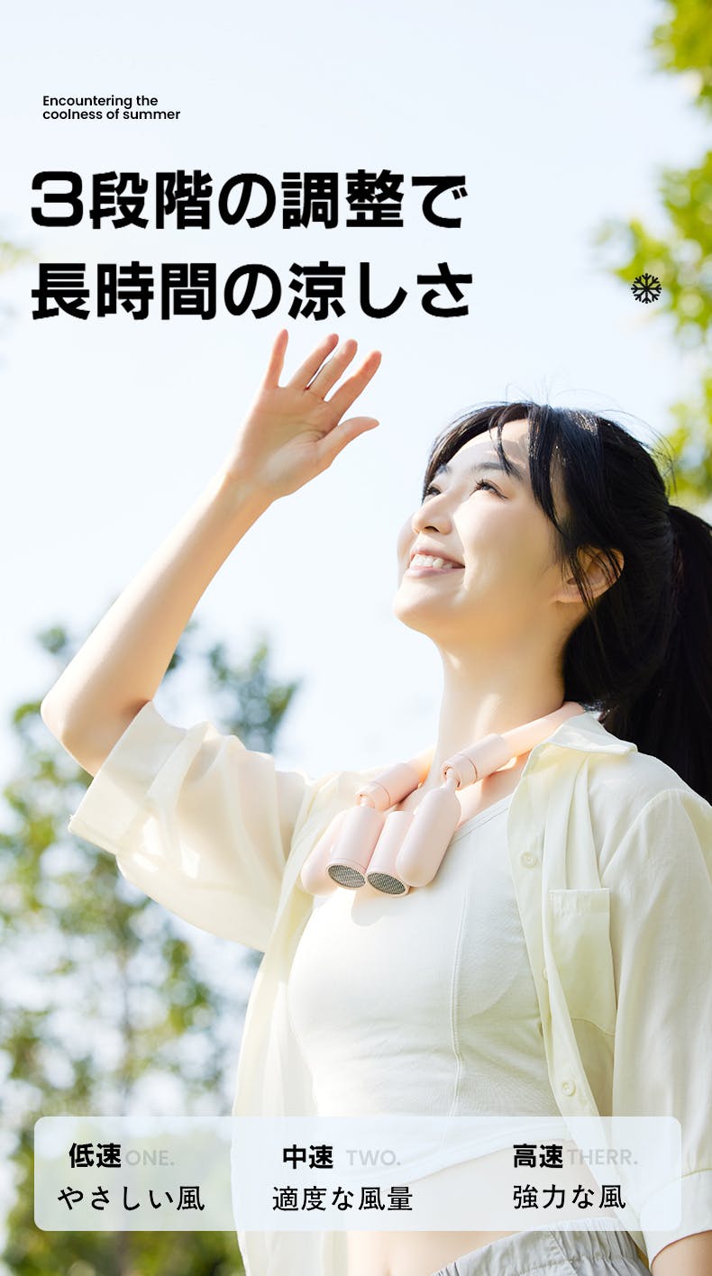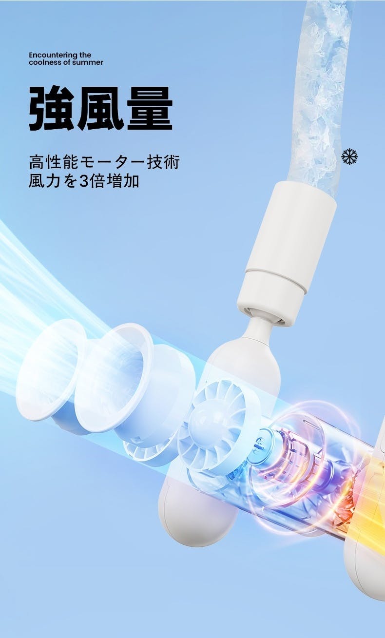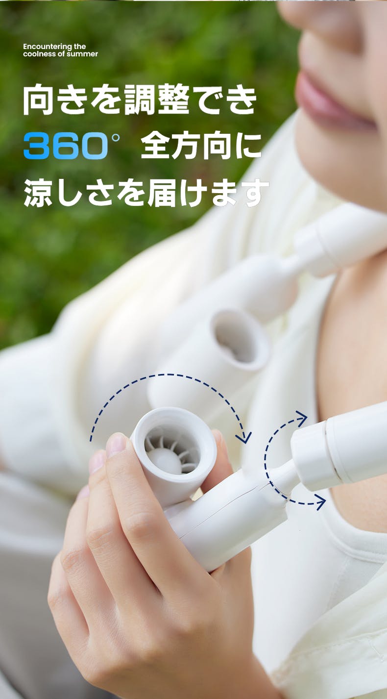 従来の首掛け扇風機とは一線を画す技術が盛り込まれており、特に暑い夏の日でも快適に過ごせるよう設計されています。
