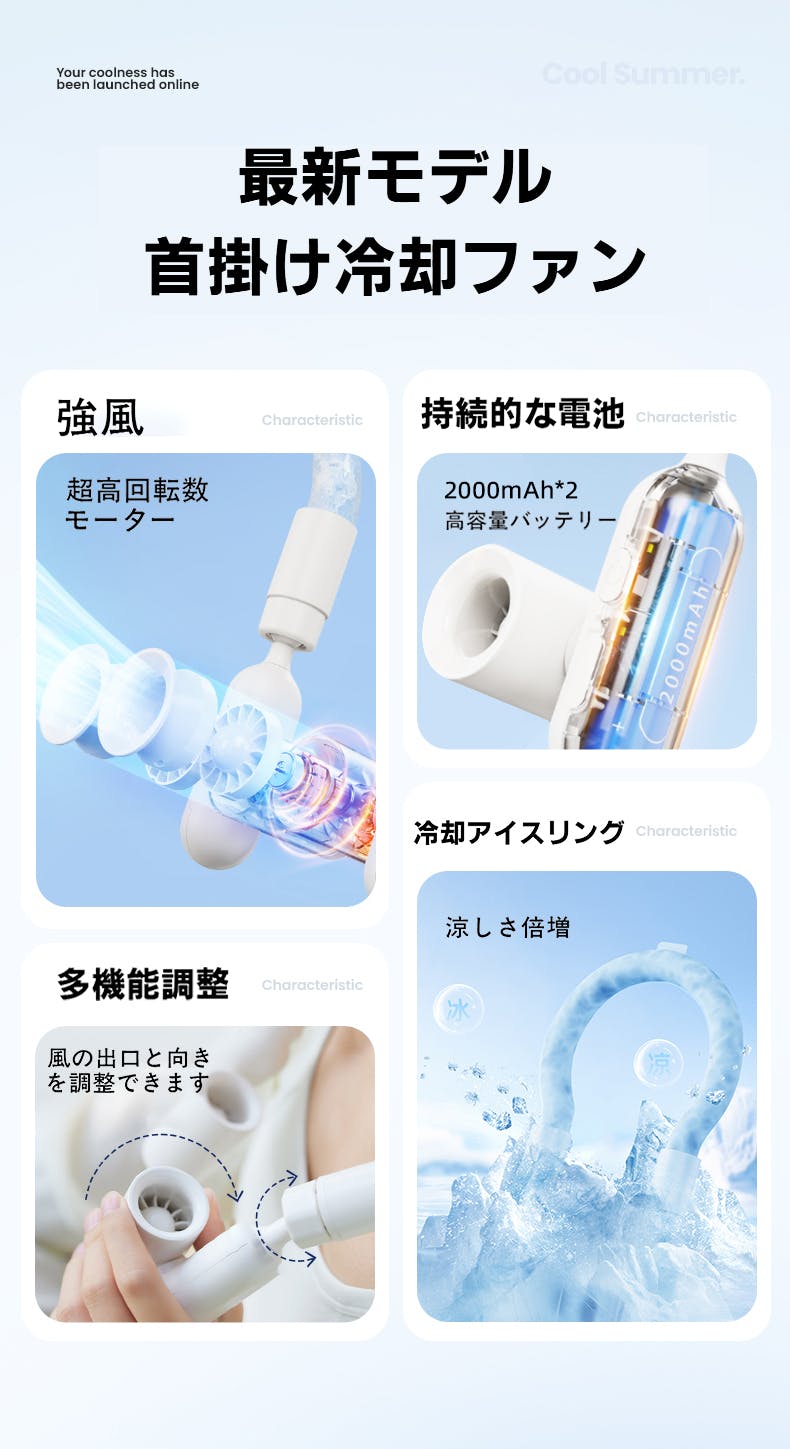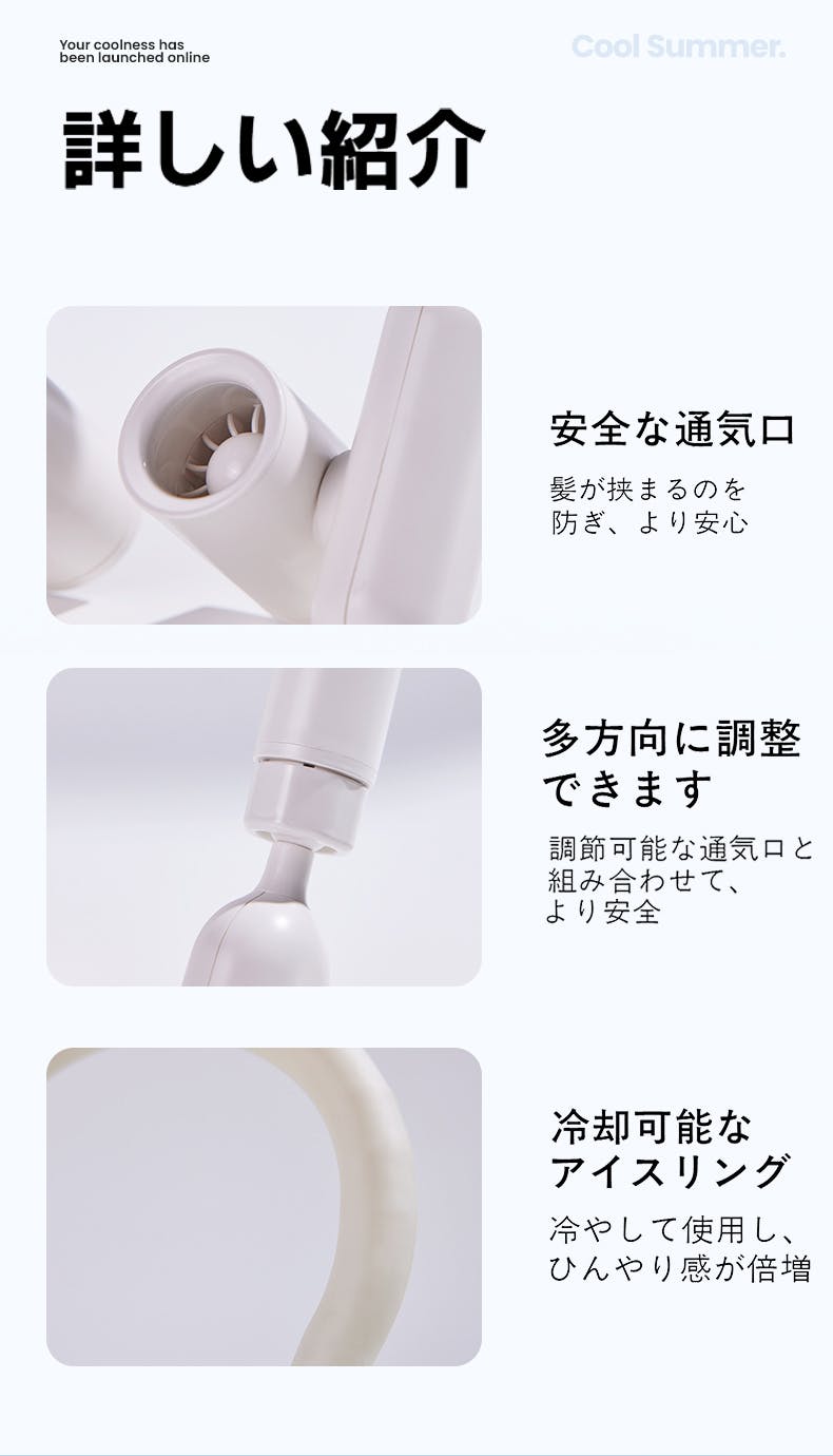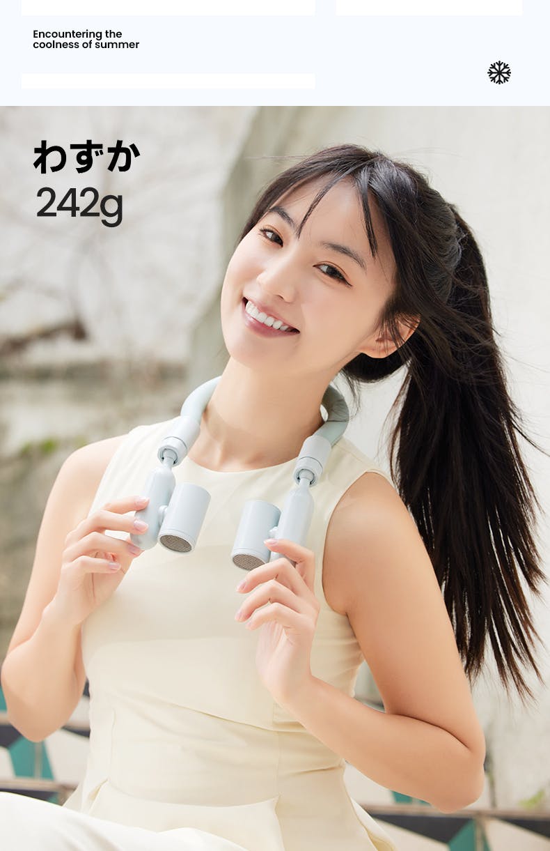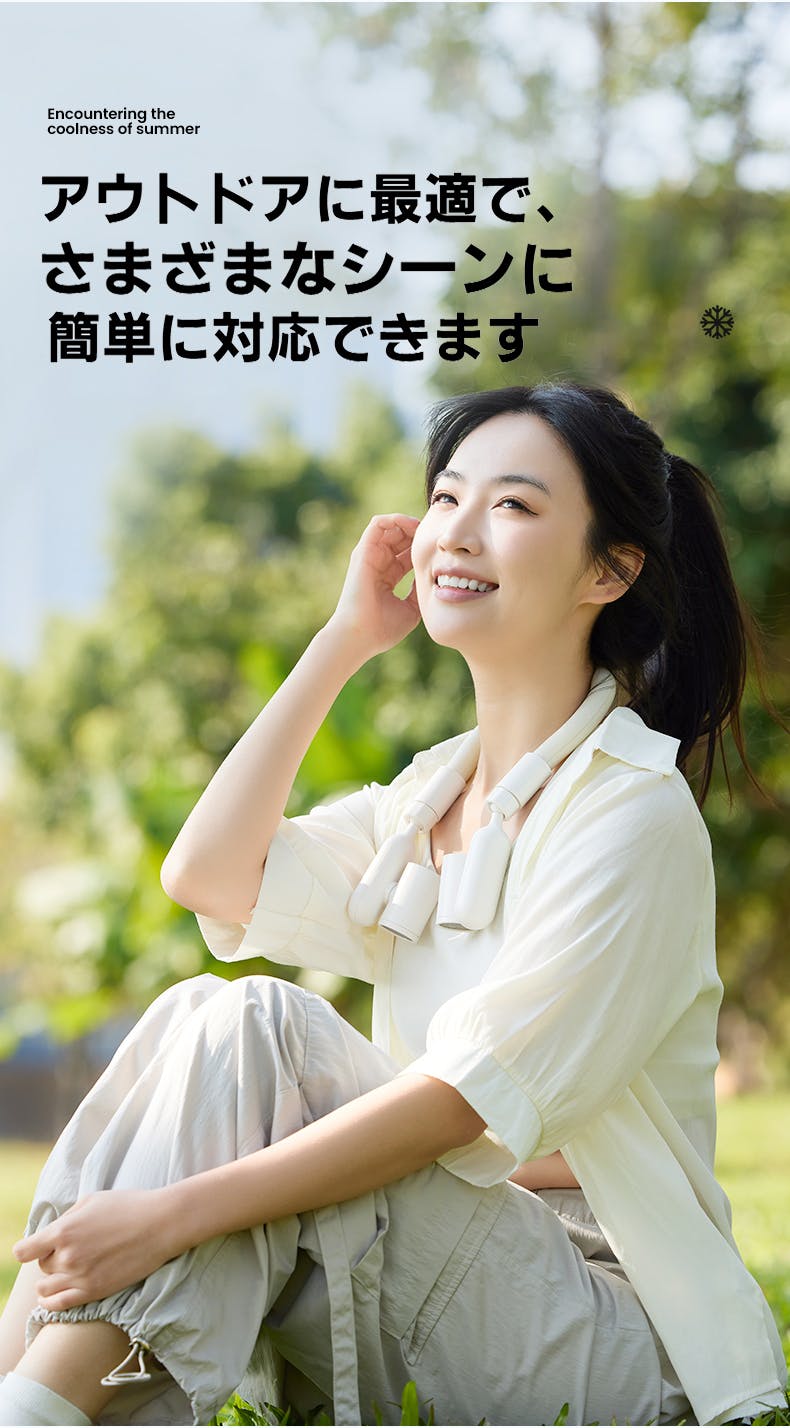 従来の首掛け扇風機とは一線を画す技術が盛り込まれており、特に暑い夏の日でも快適に過ごせるよう設計されています。