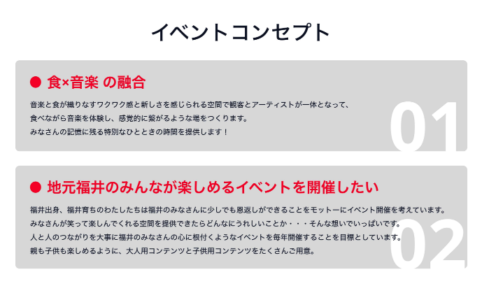 「ここに来てよかった」 「知らなかった音や味に出会えた」 「また来年もやってほしい」 そんな言葉が聞けるように、全力で準備しています。