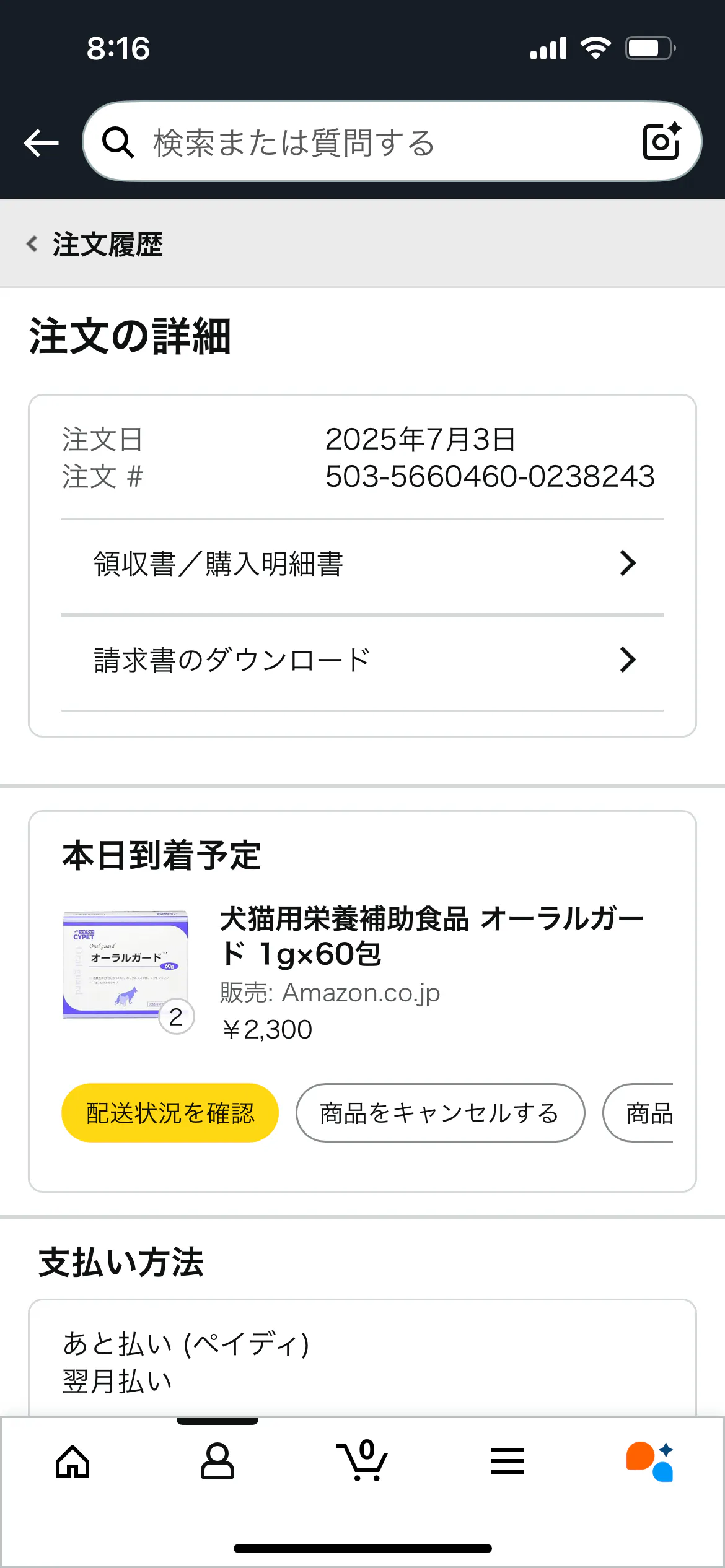 代理支援でのご支援者様の皆様方達のお力添えも有り、シマミちゃんのパウチとサプリの購入も出来ましたm(_ _)m