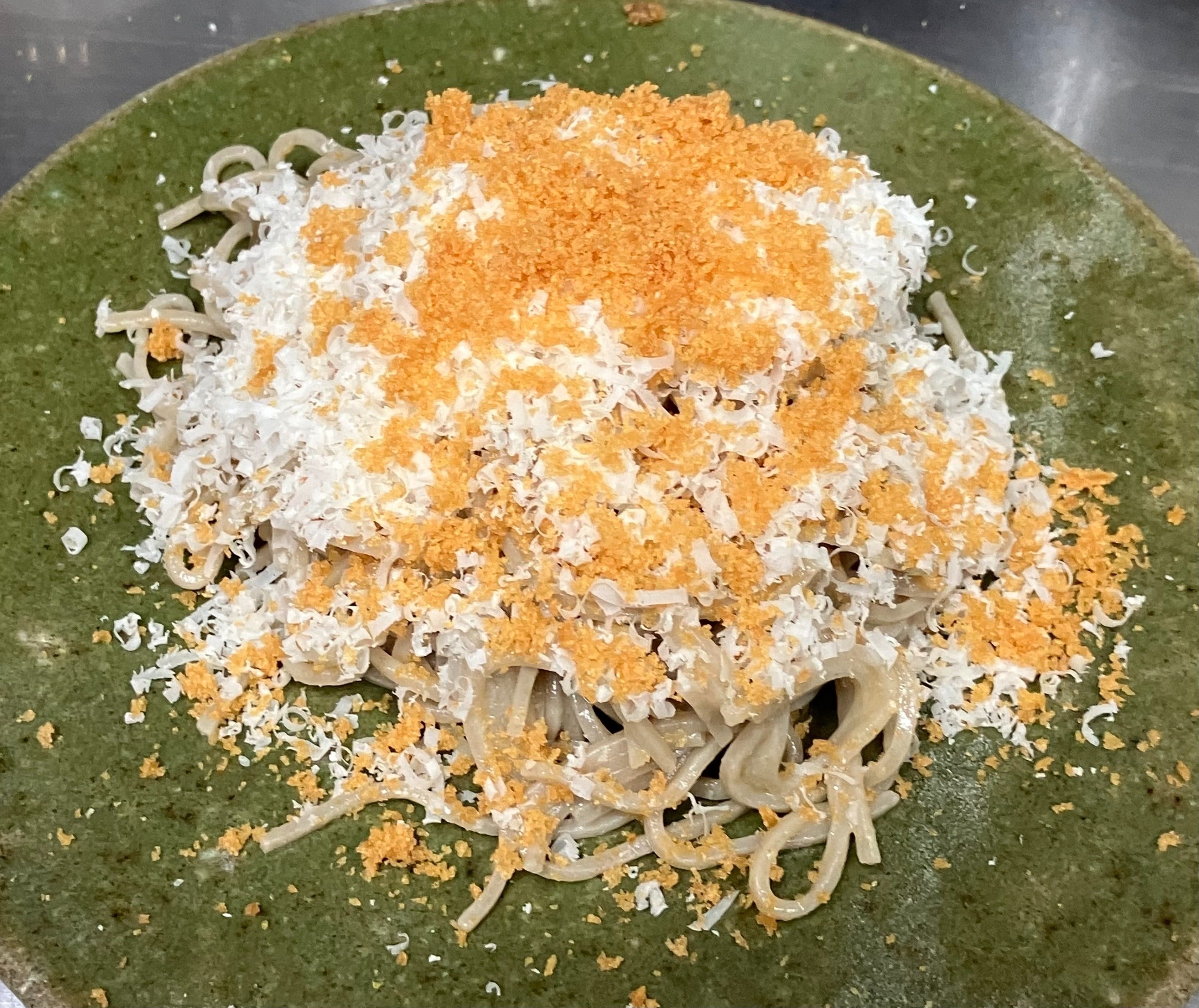 ただし、蕎麦100%でしかも発芽しかかっているため、蕎麦麺にするには手打ちは極めて難しい。そのため、機械による発芽蕎麦の前処理、製麺の必要があります。それによって、通常の、いわゆる手打ち蕎麦より遥かに旨い蕎麦が完成します。