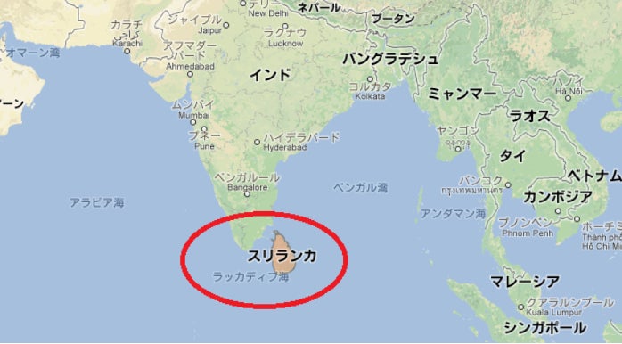 南アジアに位置しており、人口総数第二位のインドの右下の島国です。
