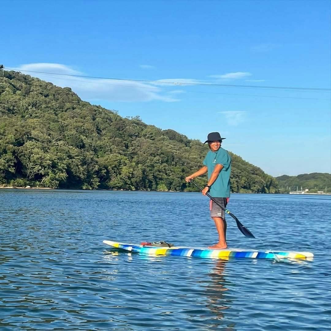 普段は静岡県浜松市にある浜名湖という大きな湖にて、SUP(Stand Up Paddle)でゆっくりと湖を漕ぐツアーをしたり、サップスクールのコーチをしています。