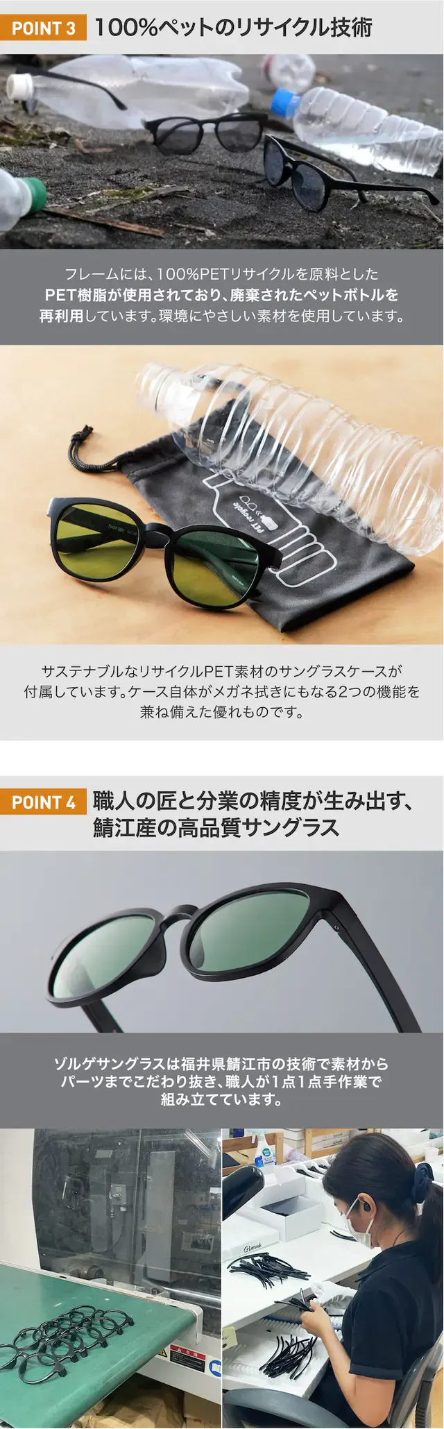 この問題を解決すべく、鯖江の技術力を結集し、これらの課題をクリアした新しいサングラスの開発を決意し、今回のスポーツモデルが登場しました。
