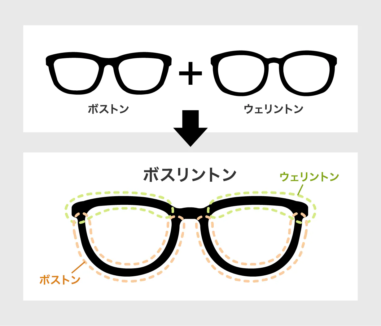 ですが、ボスリントンには、ラウンドに近いボストンの要素が入っており、丸メガネと似たような雰囲気があります。ウェリントンの四角形的な要素も含まれているため、まん丸なラウンドより挑戦しやすいでしょう。