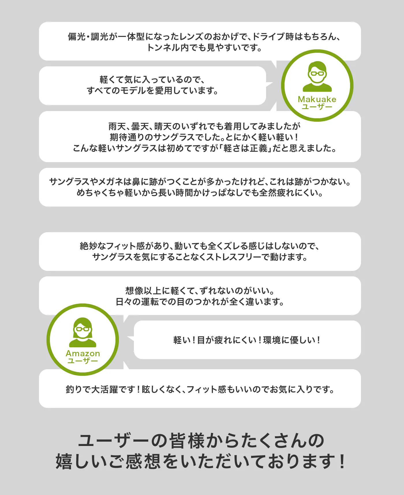 2026/02/20 20:20株式会社いちばんぼしの浅山佳映子です。いつも、Sorgeのプロジェクトを応援してくださり、本当にありがとうございます。このたび、Sorgeサングラスの新作プロジェクトが、Makuakeにて公開されました。▼プロジェクト詳細はこちらhttps://www.makuake.com/project/sorge12/★シリーズ最軽量となる 15g。今回のモデルは、これまでのシリーズを踏まえ、「かけていることを忘れる軽さ」をテーマに開発しています。長時間かけても負担を感じにくく、日常からアウトドアまで自然に使える一本を目指しました。ぜひ、詳細をご確認くださいませ。▼プロジェクト詳細はこちらhttps://www.makuake.com/project/sorge12/ もっと見る全ての発送が完了いたしました!