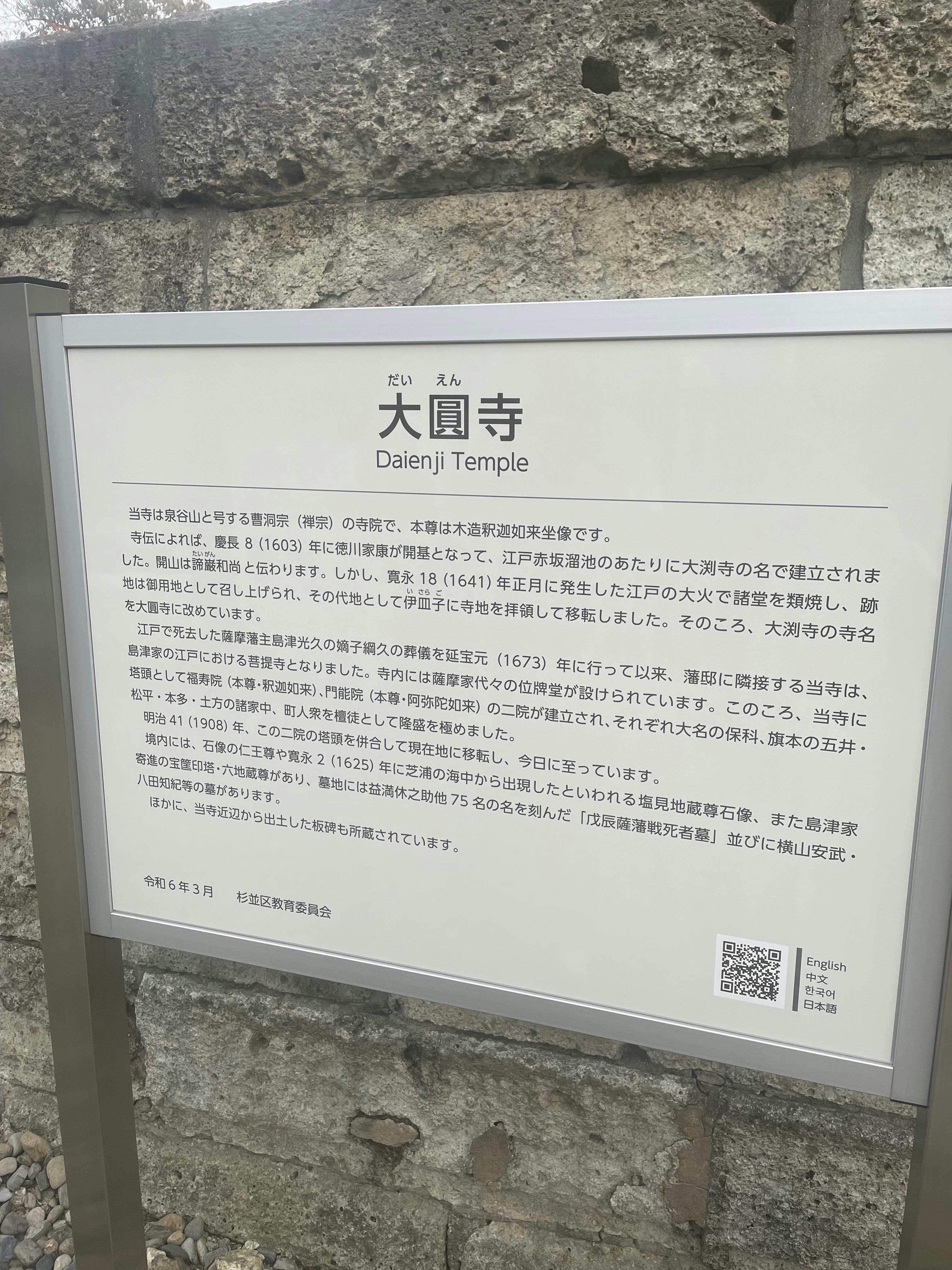 その中に比嘉親雲上という人物が、道中で命を落とし高輪大圓寺に埋葬されたという記録がありました。高輪は私たちの稽古場も近いので調べると、現在は杉並区永福町へ移転していました。