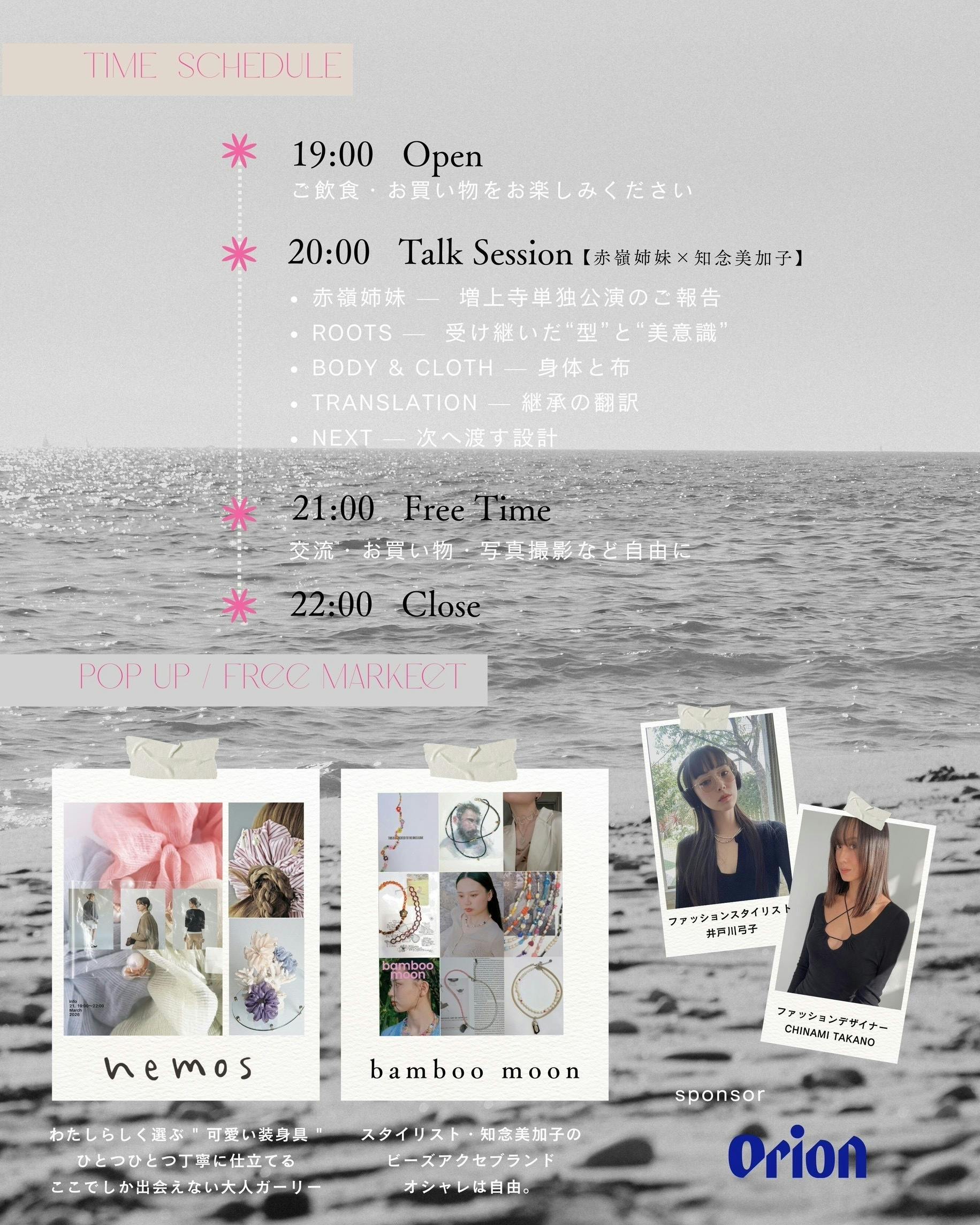 人気スタイリストの知念美加子さんとのトークセッションでは、私たちのルーツである沖縄をキーワードにジャンルを超えた琉球芸能の可能性について語ります。