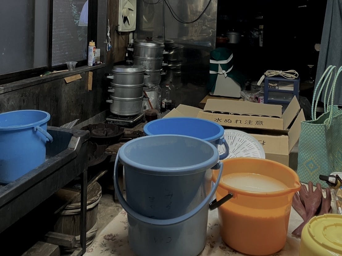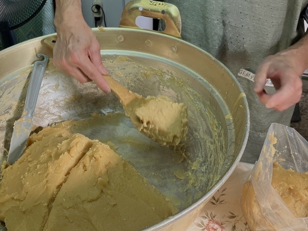 今週発送用のよもぎ餅の大豆餡作り