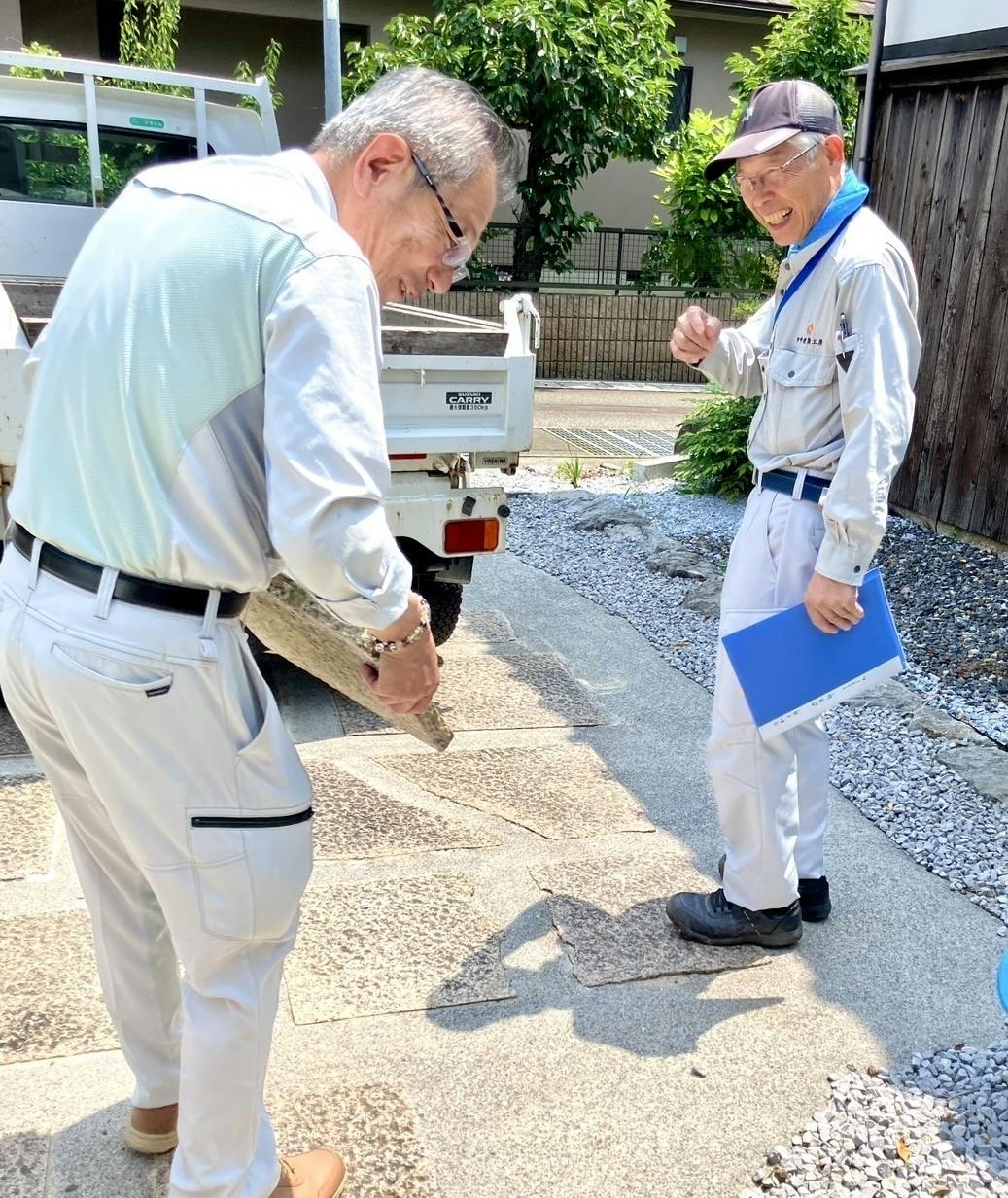 そして暑い中、今回改修工事でお世話になる建築屋様、アプローチの基礎をしてくださる業者様が、打ち合わせに来てくださいました。
