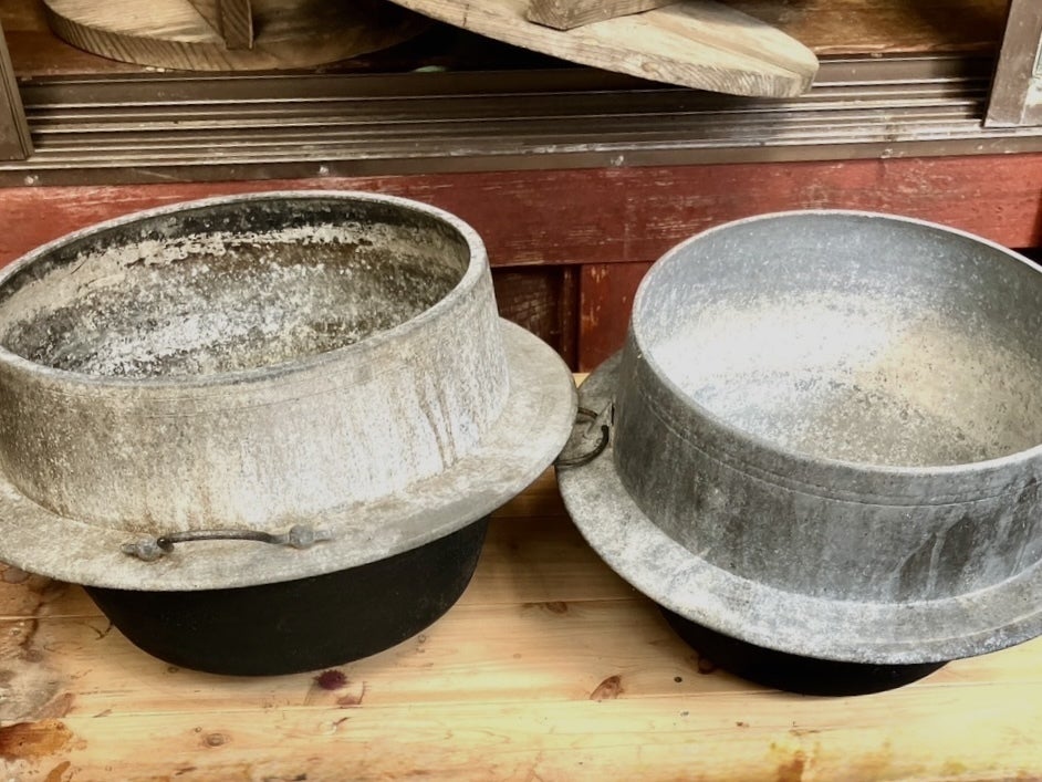 昨日の片付け中、大きな羽釜やすり鉢がごろんと出てきました。