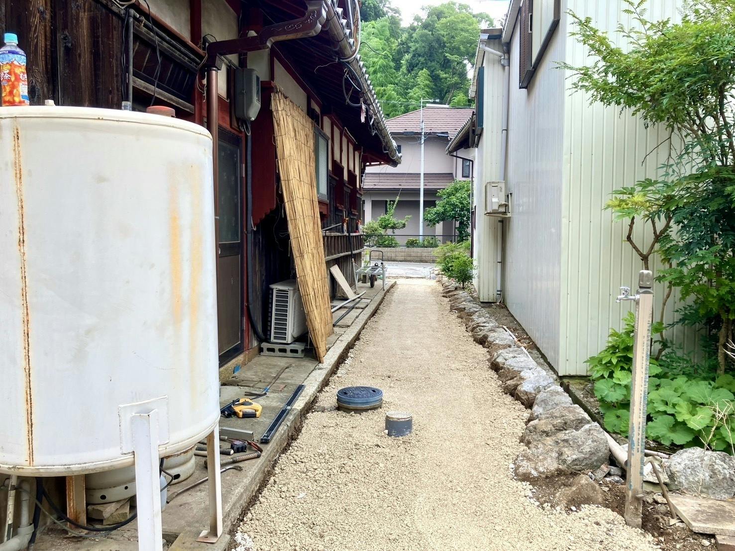 工房前のアプローチ部分の工事がだいぶ進み、わずか1週間でガラッと風景が変わりました。