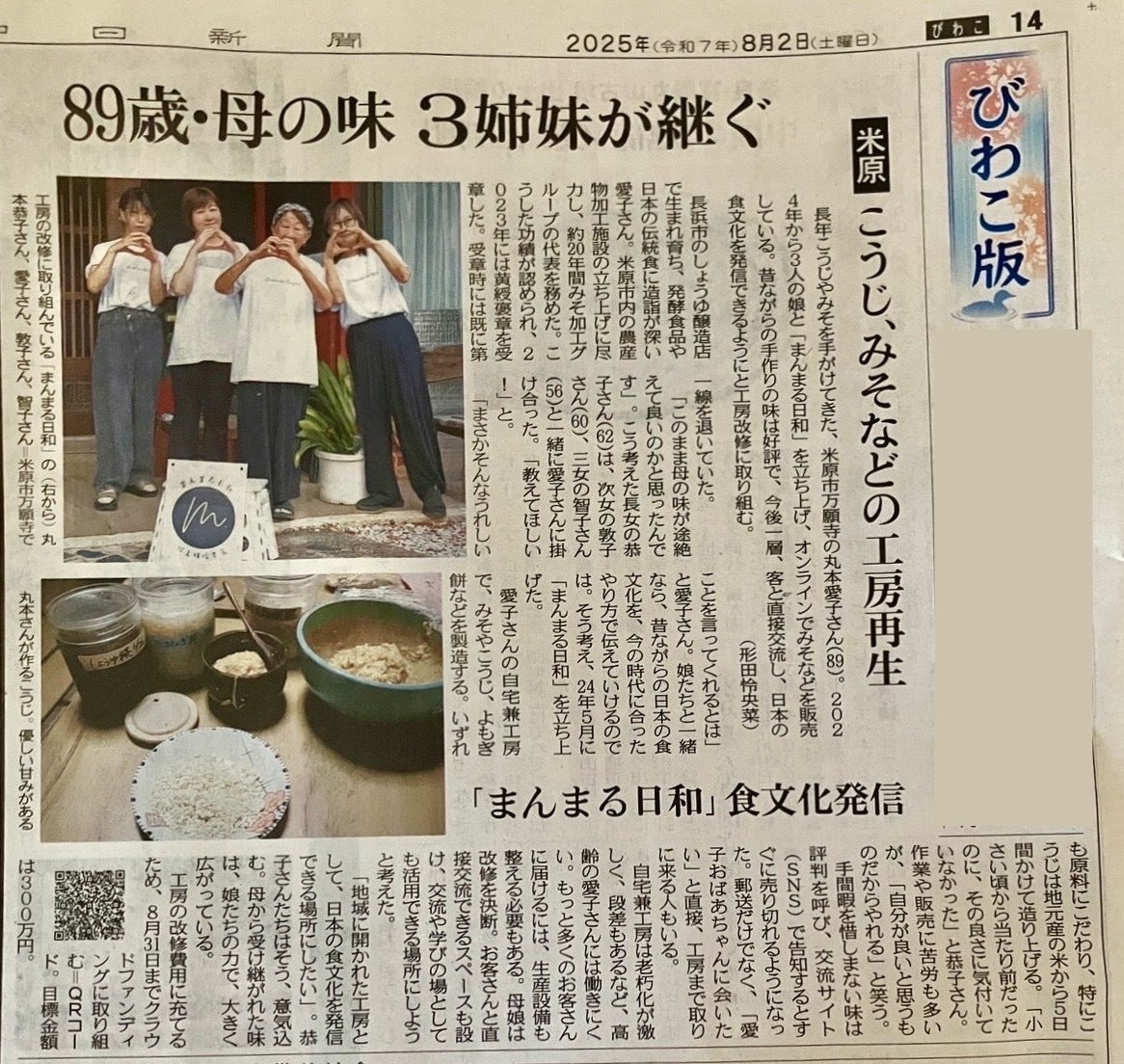 8月2日 中日新聞に「まんまる日和」の取り組みが掲載されました!