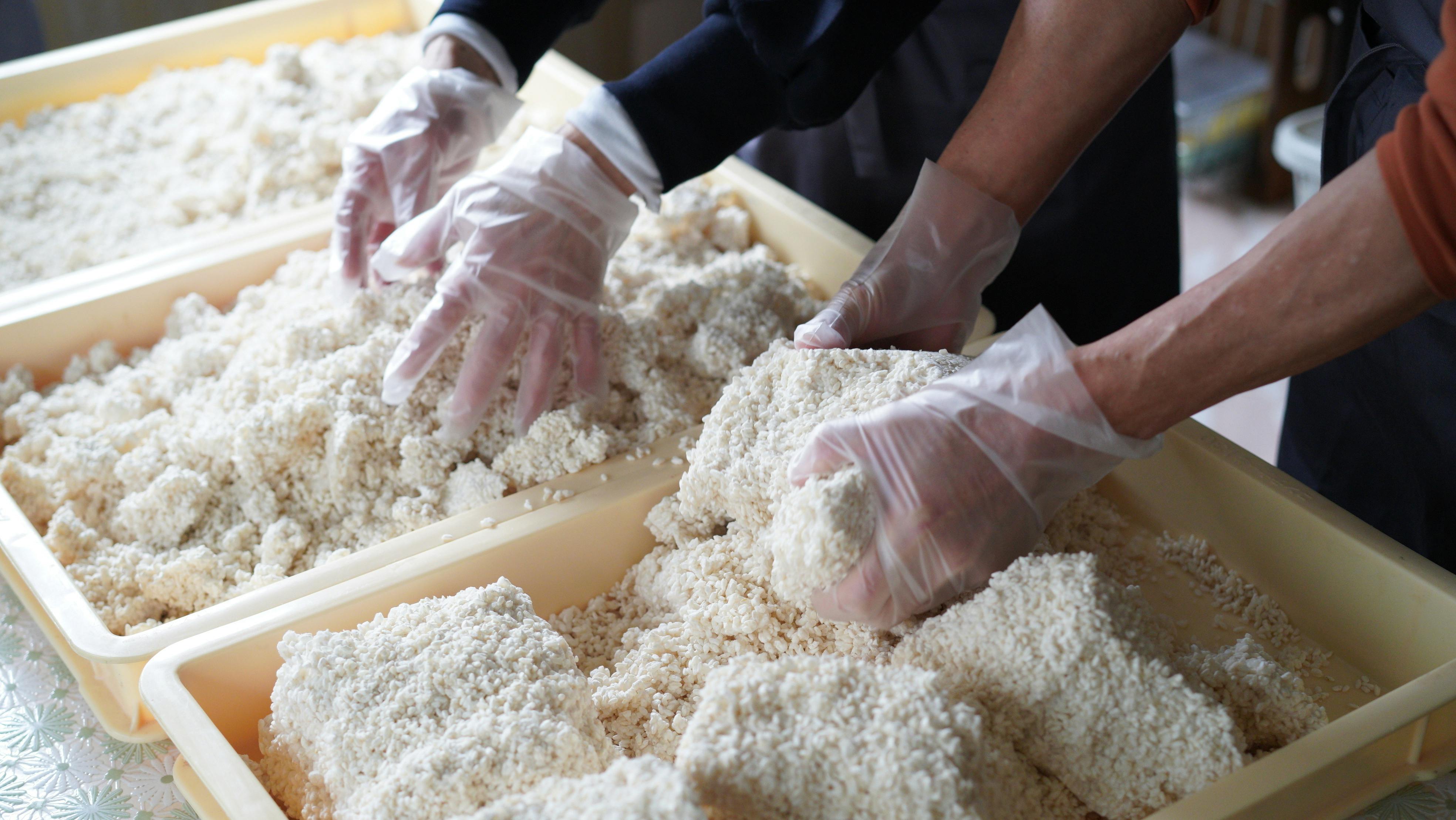 【糀の手入れ作業】皆様にお届けする糀と味噌は、母の長年の技術と想いの結晶です。