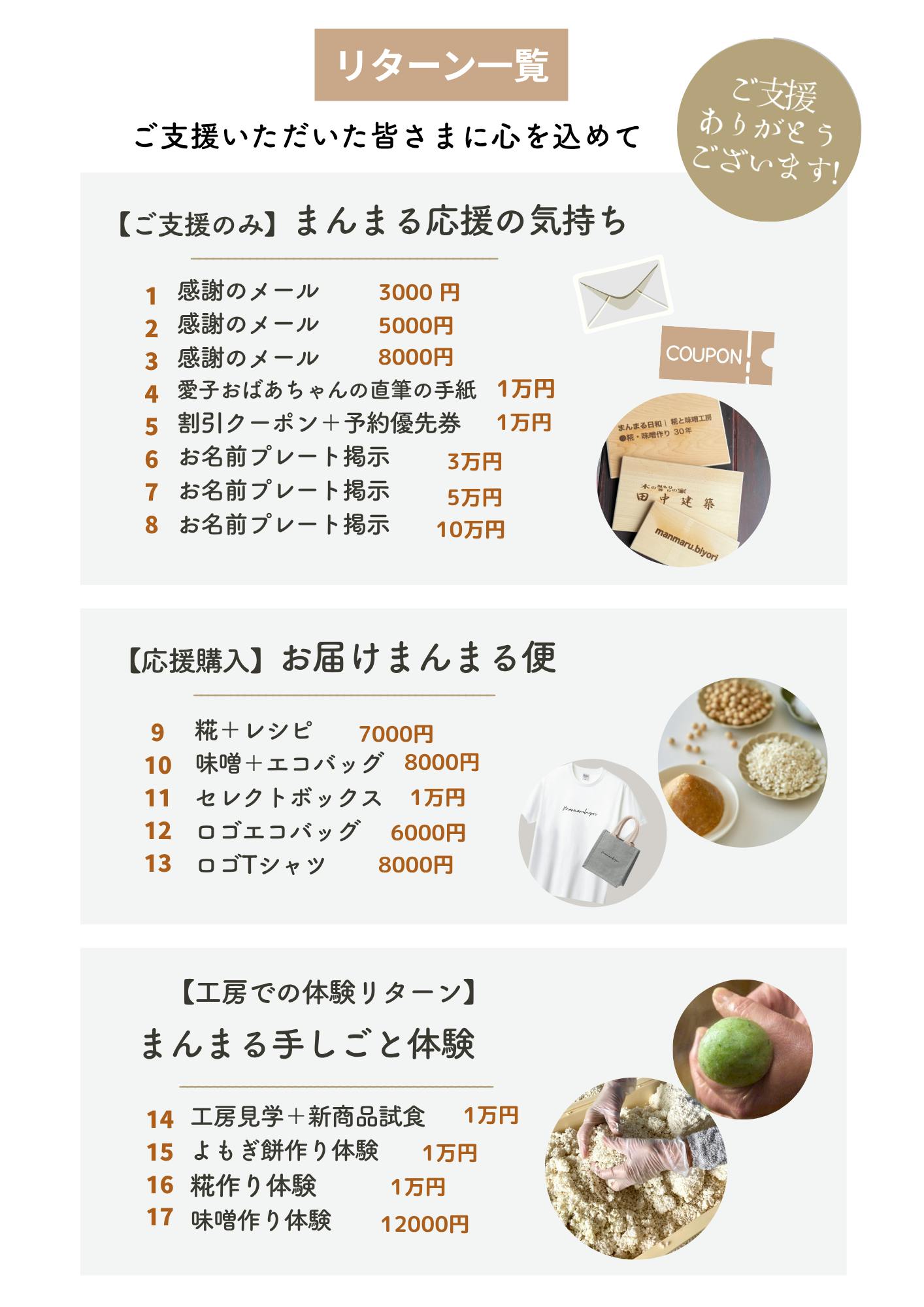 まんまる日和ならではの「糀のある暮らし」を感じていただけるリターンをご用意いたしました。