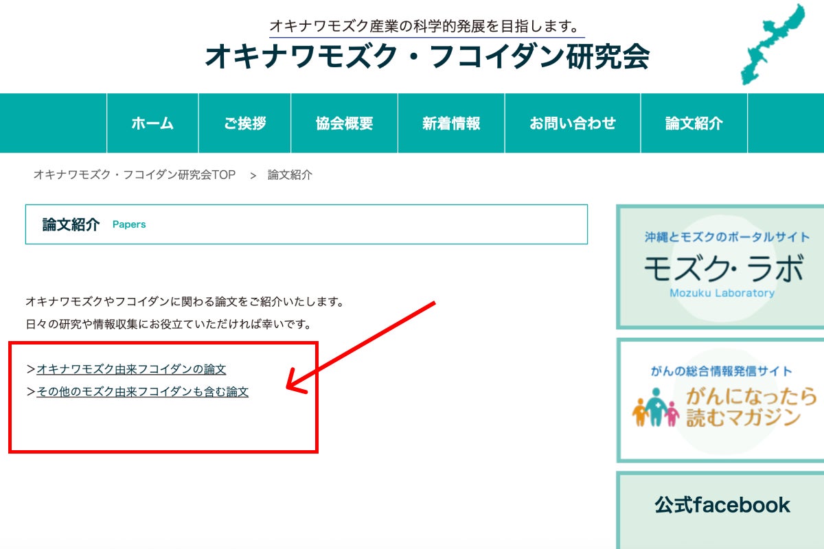 オキナワモズク・フコイダン研究会のホームページでは、オキナワモズクやフコイダンに関する論文を読むことができます。