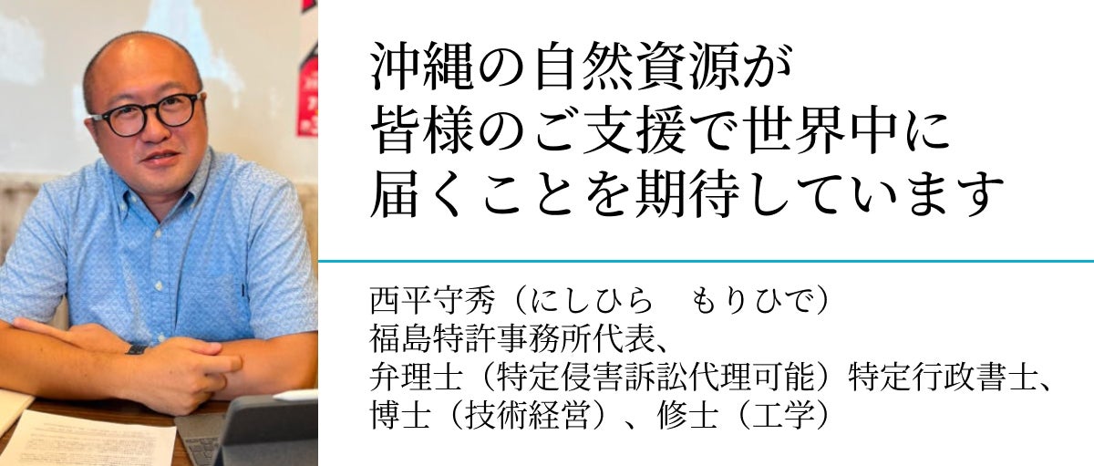 この商品には、単なる健康食品の枠を超え、沖縄の自然、技術、そして私たちの夢や誇りが詰まっています。私たち事務所は、知的財産を通じてもずく養殖の生産者の方々とも長年向き合ってきましたが、彼らは原料モズクの不安定な買取価格に悩みながらも、沖縄の食文化と産業を守るために汗を流しています。その現場を何度も目の当たりにし、「この努力がもっと報われ、誇りとなる未来をつくりたい」と強く思ってきました。今回のプロジェクトは、そうした生産者たちの想いや努力が報われ、誇りとなる未来へと、沖縄の可能性を世界へ解き放つ一歩になるものと信じています。沖縄の原材料を、沖縄の手で加工・商品化し、適正な利益と雇用を地元にもたらすー私自身がずっと願い続けてきた「沖縄発のイノベーション」のかたちの実現に、どうかお力をお貸しください。