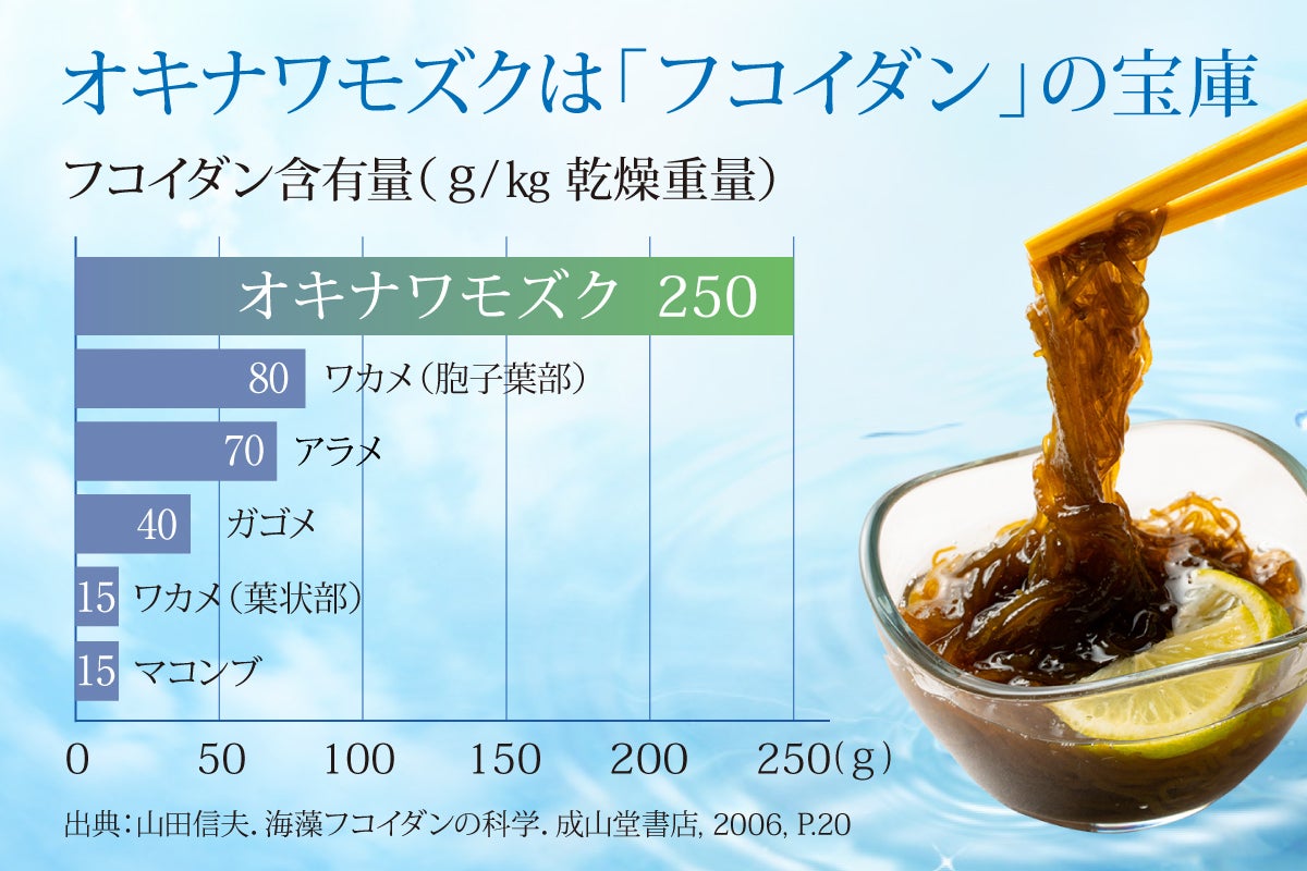 オキナワモズクのフコイダン含有量は、ワカメの3倍以上!