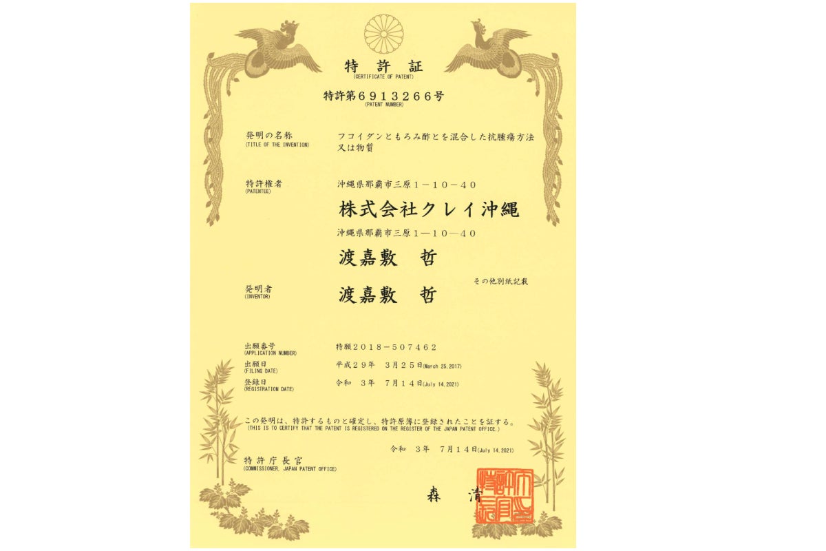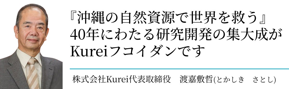 私たちは長い間、健康長寿の食習慣や食材を科学的に研究し、多くの特許を取得してきました。創業40年の株式会社クレイ、研究歴30年の友利誠創薬科学博士、沖縄初の特許事務所代表の西平守秀弁理士が、これまでの研究や発明の集大成として取り組むのが、「Kureiフコイダンプロジェクト」です。