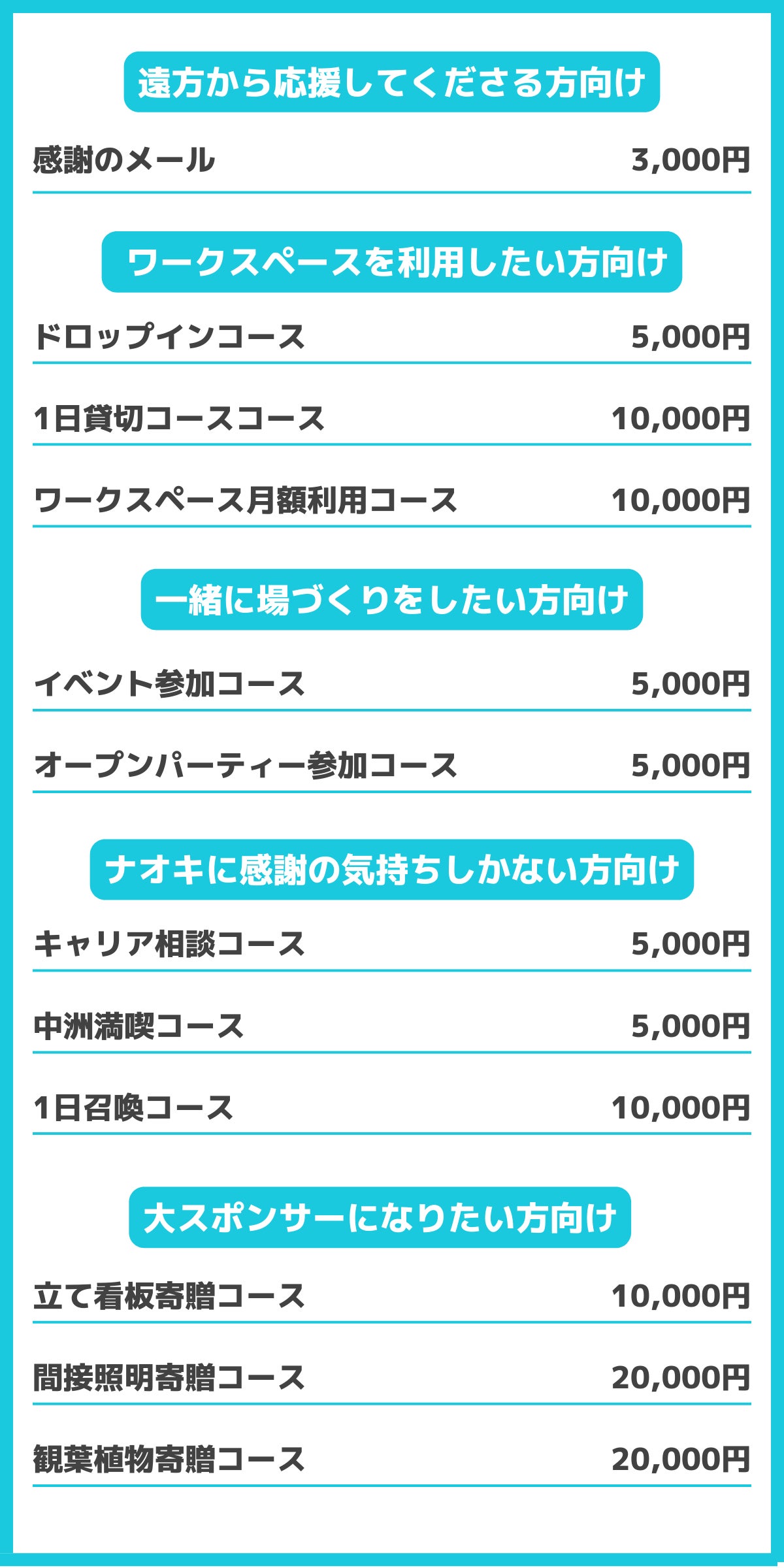 - 駆け出しのフリーランスを集めた、無料で交流できるイベント開催その際に出す飲食代として使わせていただきます!