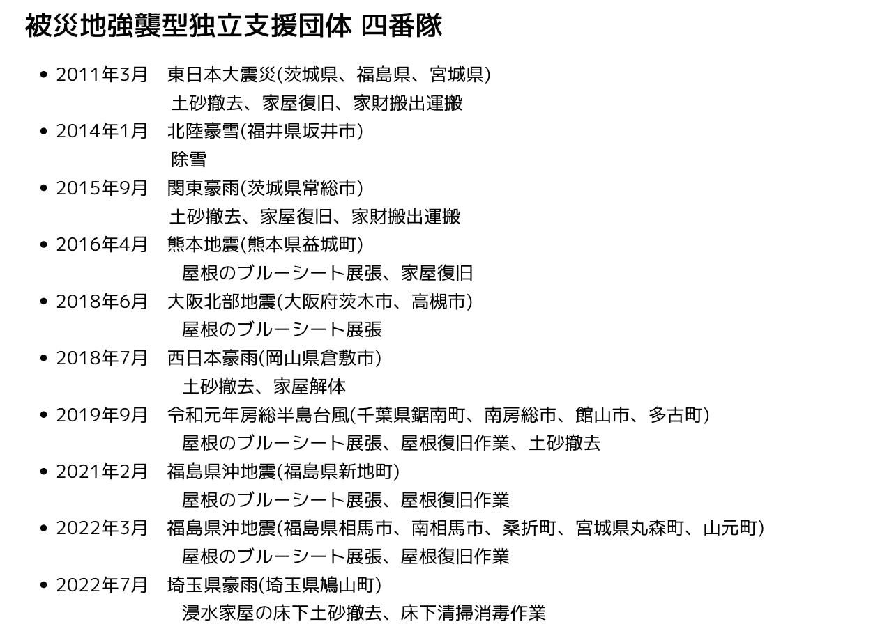 2011年の東日本大震災をきっかけに四番隊を結成しました。