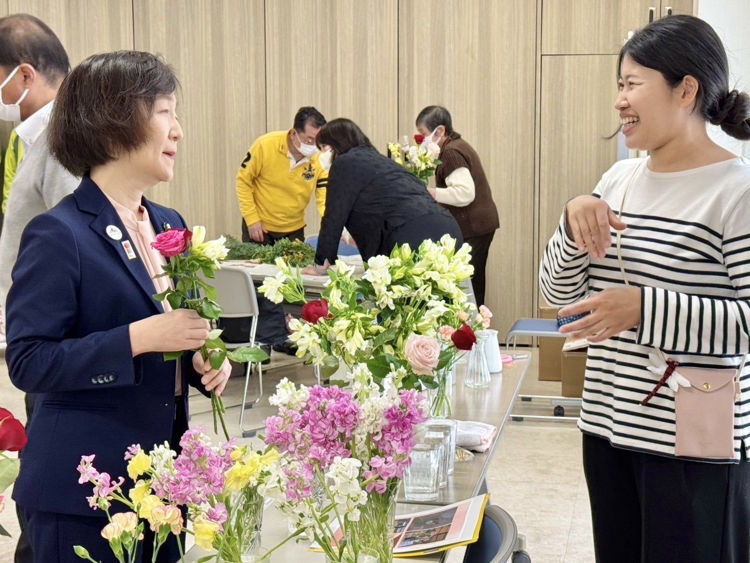 また、酒田市の矢口明子市長にもお越しいただき、弊団体にお礼として頂戴した「啓翁桜」を能登半島でのフラワーサロン活動に活用し、多くの被災者の方々に喜ばれたことを、直接ご報告することができました。
