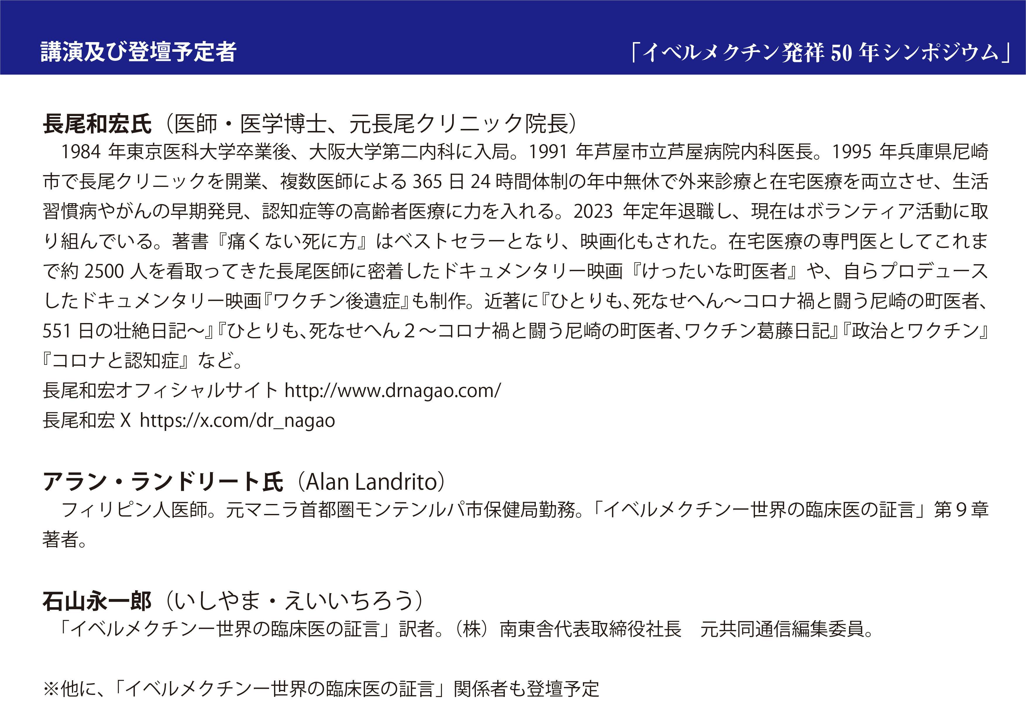 9月7日(日)イベルメクチン発祥50年シンポジウム、出版記念会開催