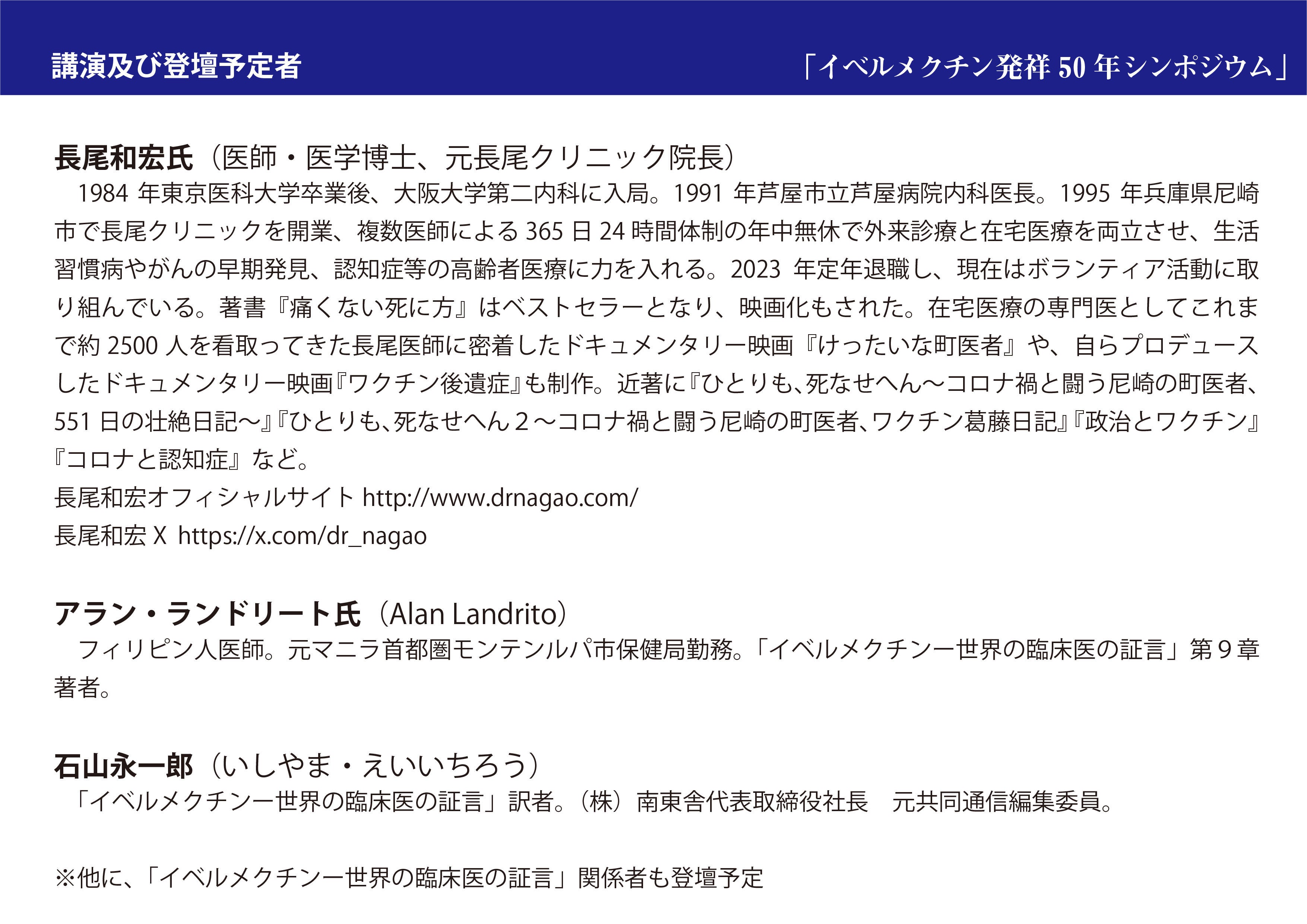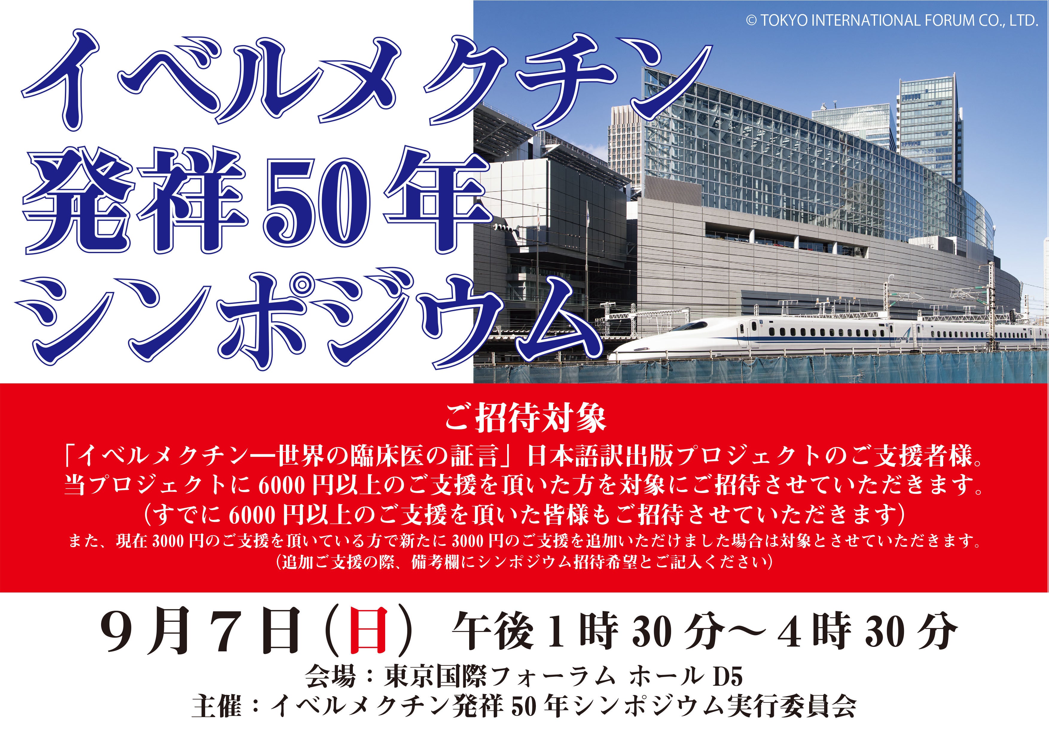 9月7日(日)イベルメクチン発祥50年シンポジウム、出版記念会開催