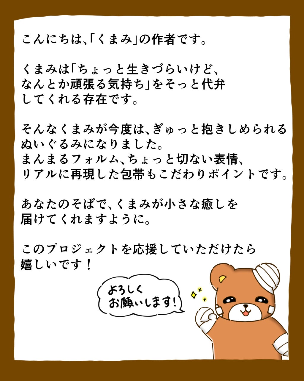 ちょっと生きづらいけど頑張る姿が話題の「くまみ」がぬいぐるみ化に挑戦します!