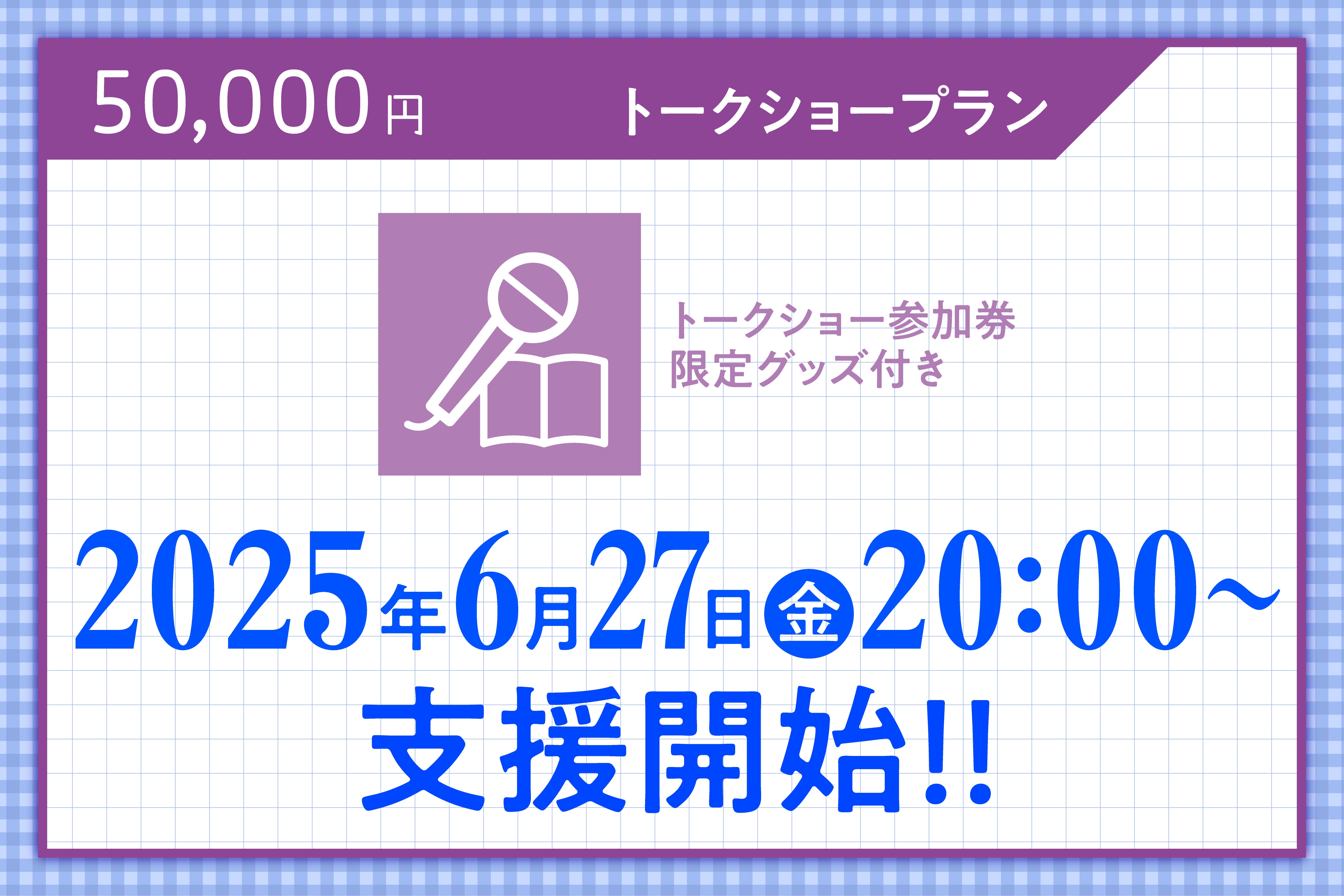 ※すでに満足度7・8コースをご支援済みの方は、重複してトークショープランをご支援されないようご注意ください。