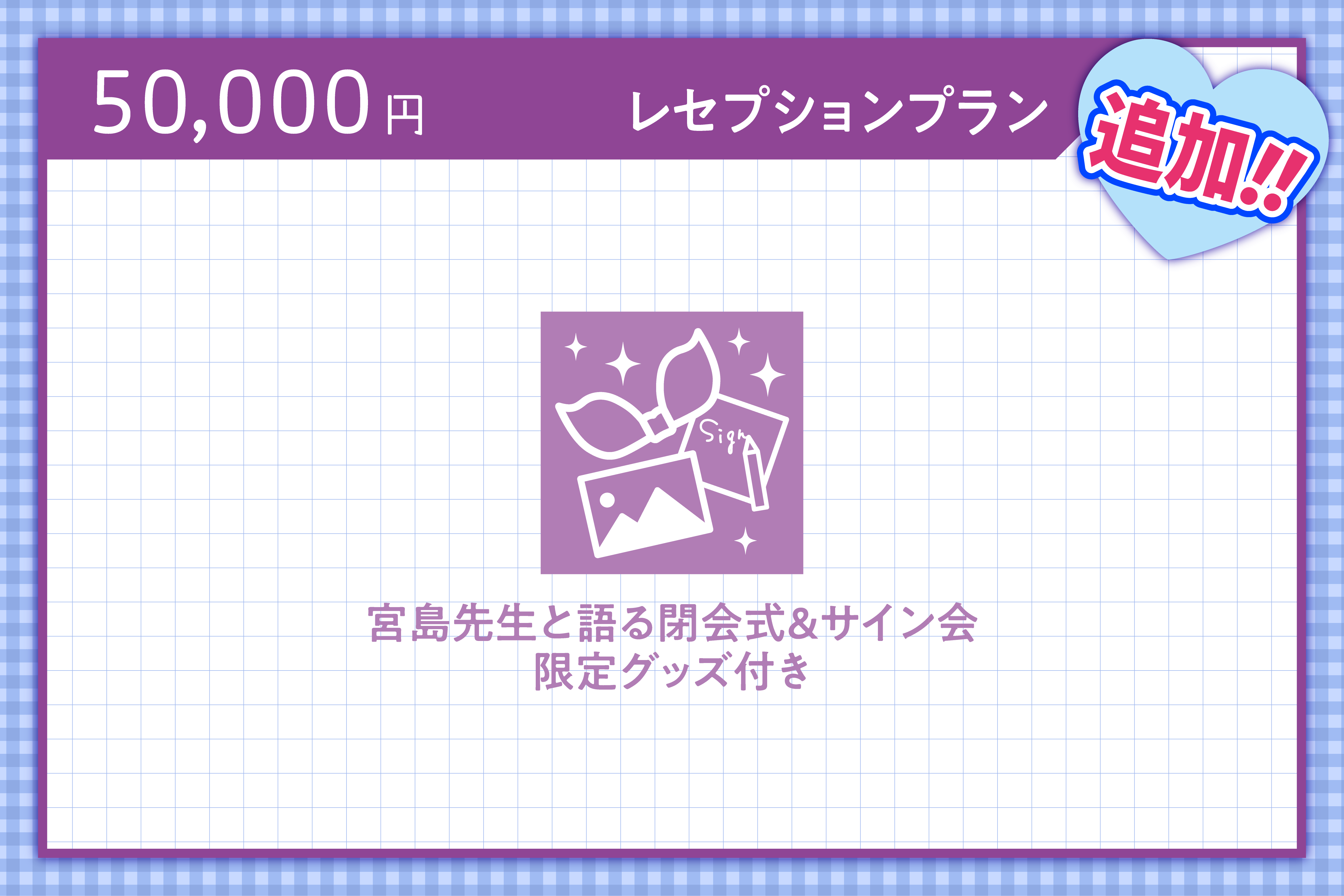 こちらは、宮島先生との個展の閉会式&サイン会にご参加いただけるスペシャルなプランとなっております!