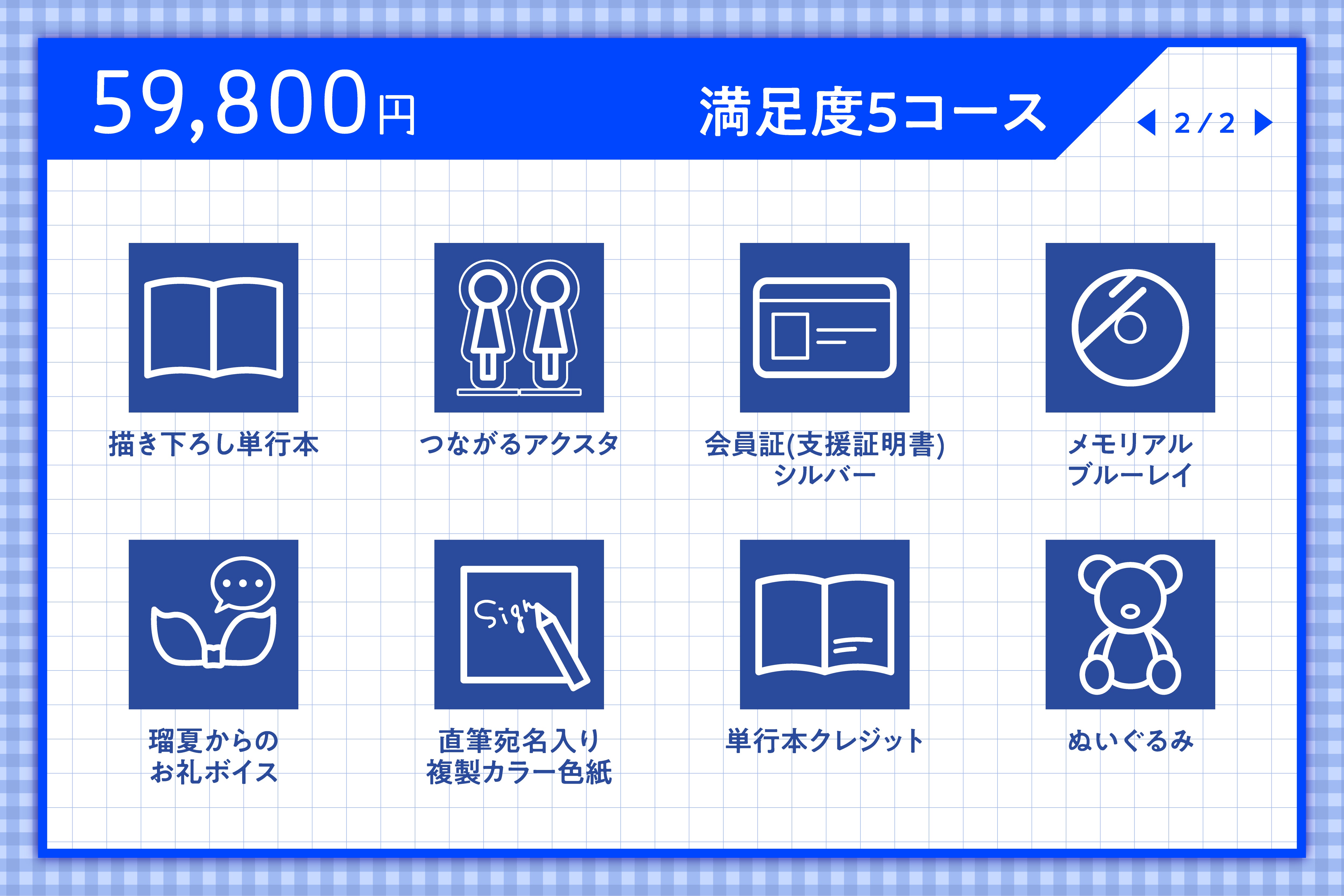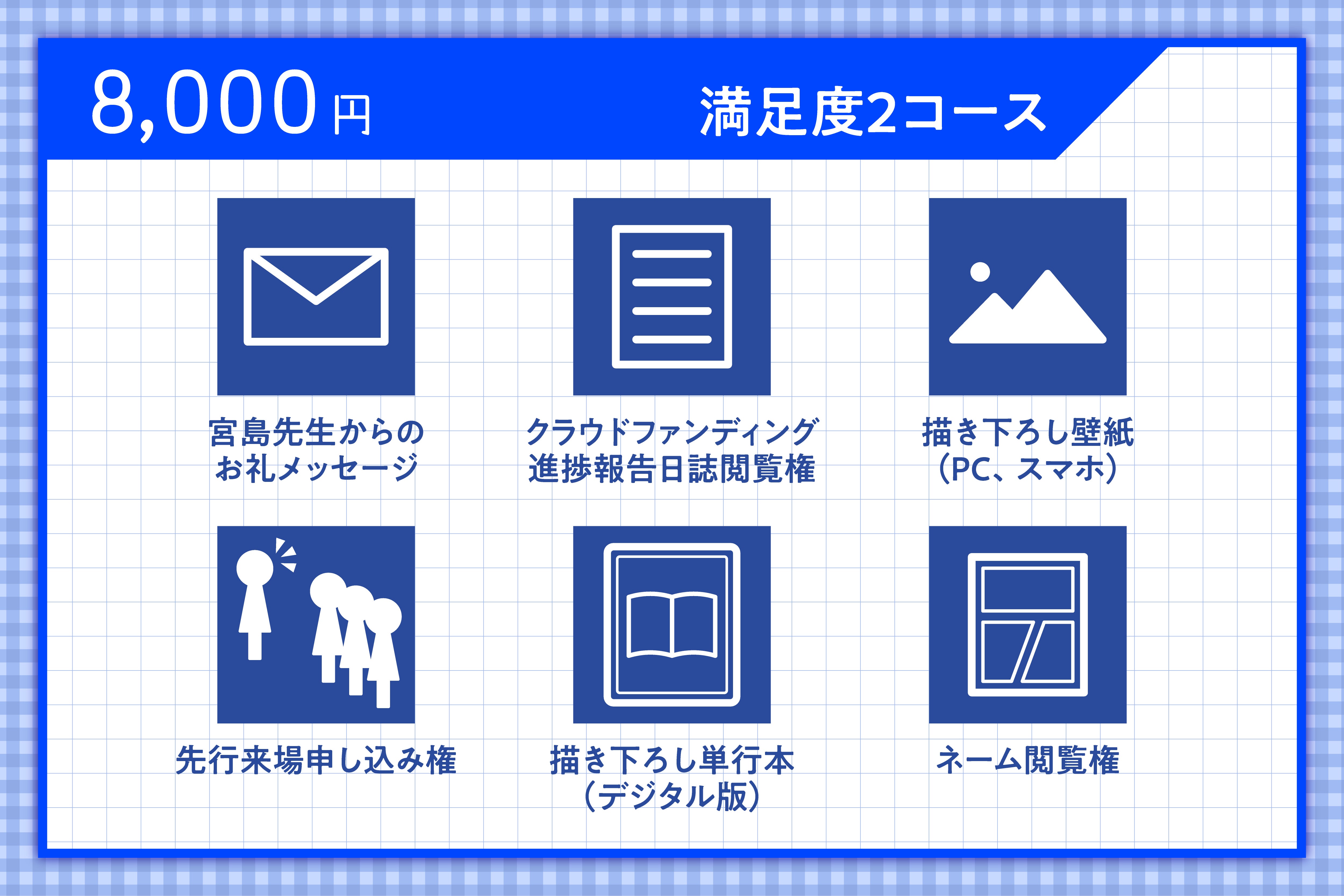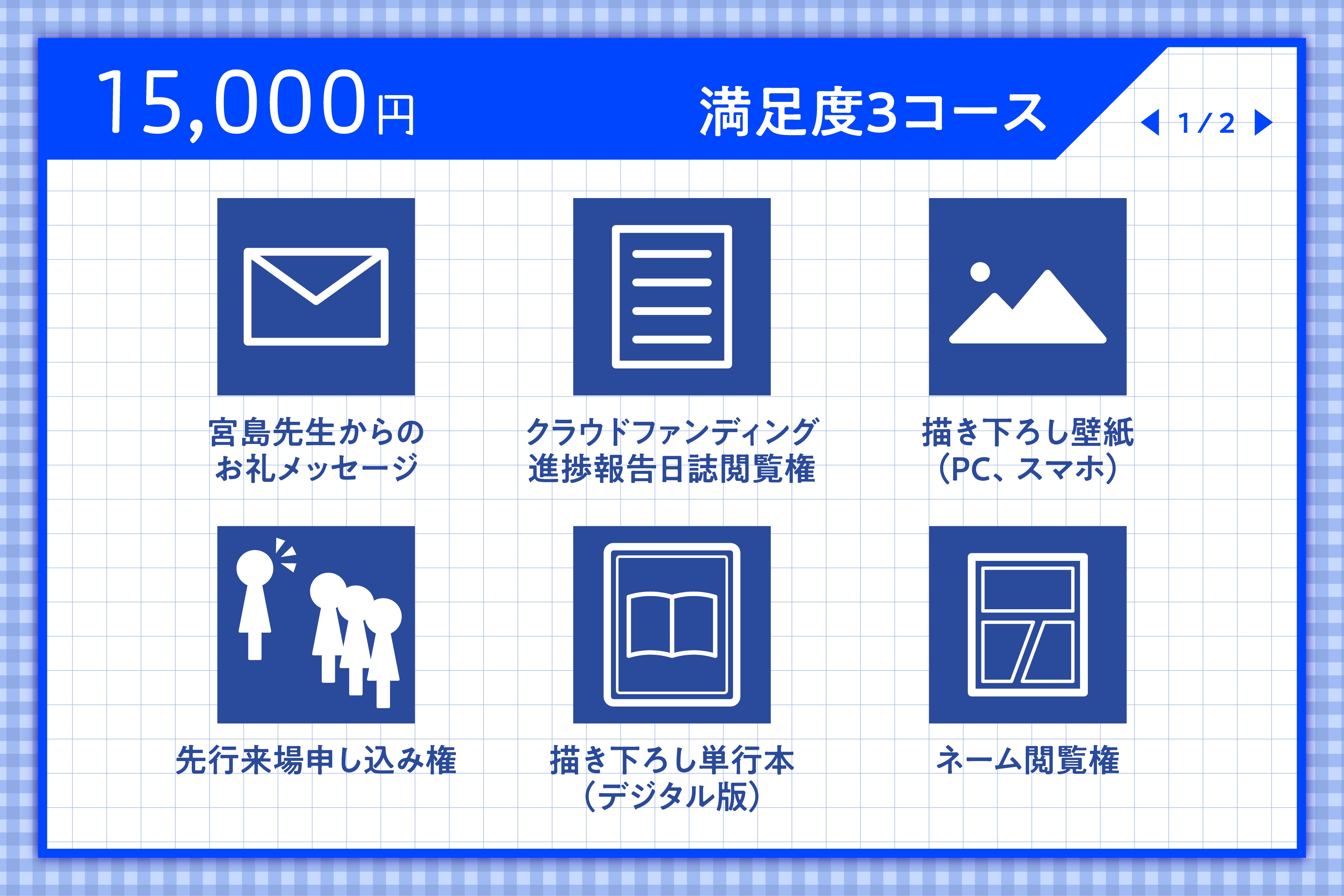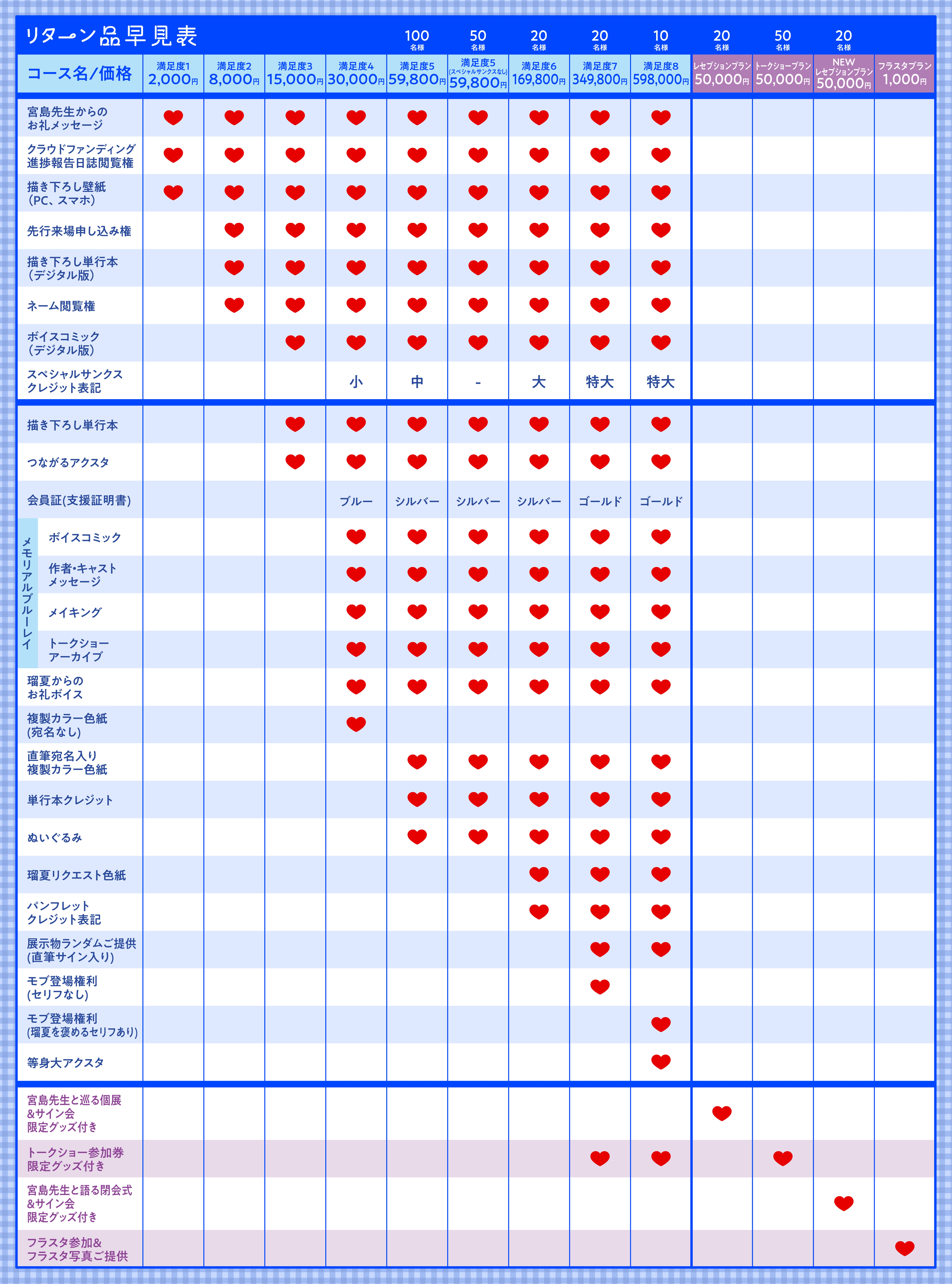 満足度7・8コースの方は、リターン品に「トークショー参加券」を追加いたしますので、トークショープランとの重複購入にお気をつけください。
