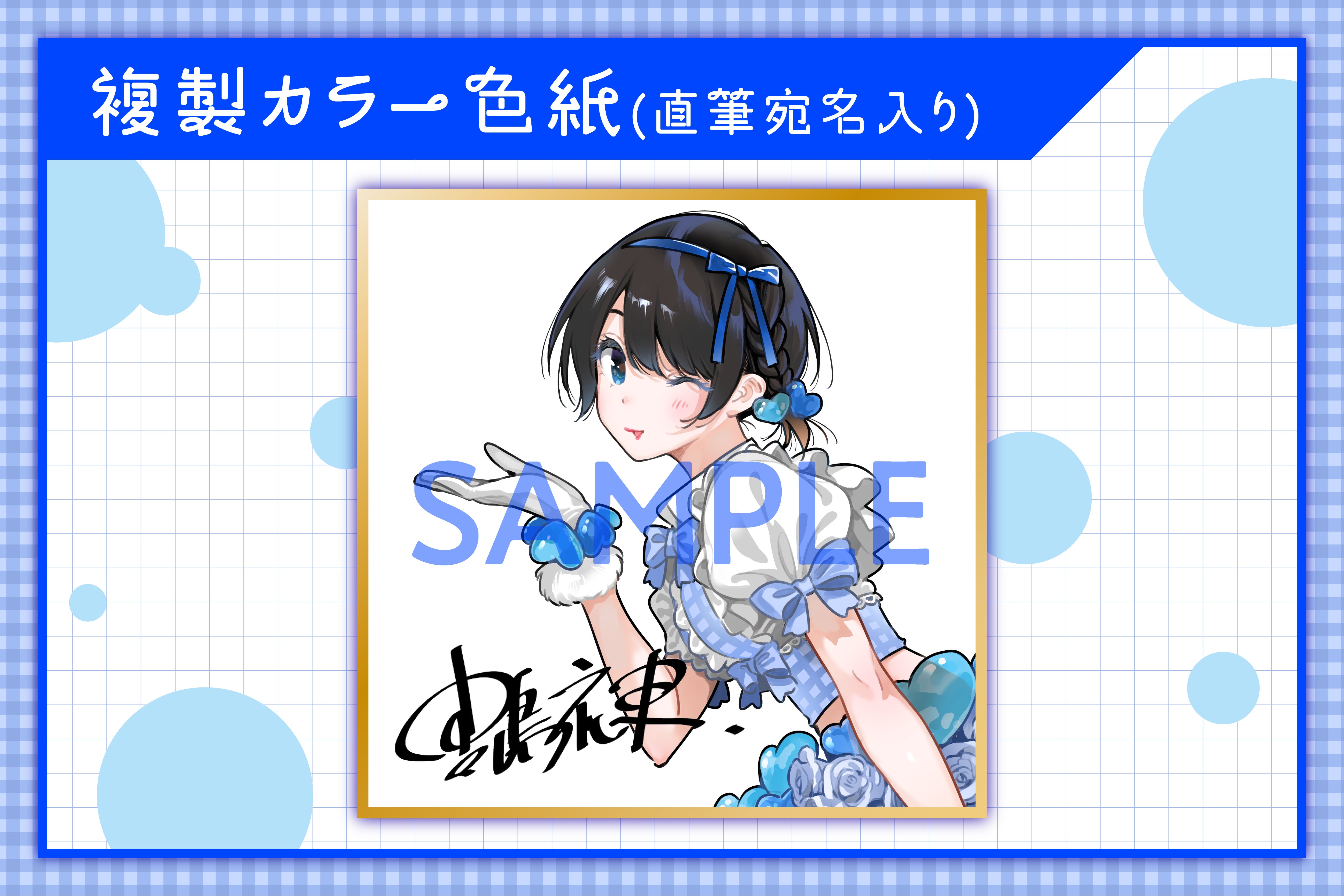 ポーズや表情をリクエストできますので、あなただけの世界に一枚の色紙をリクエストできます!