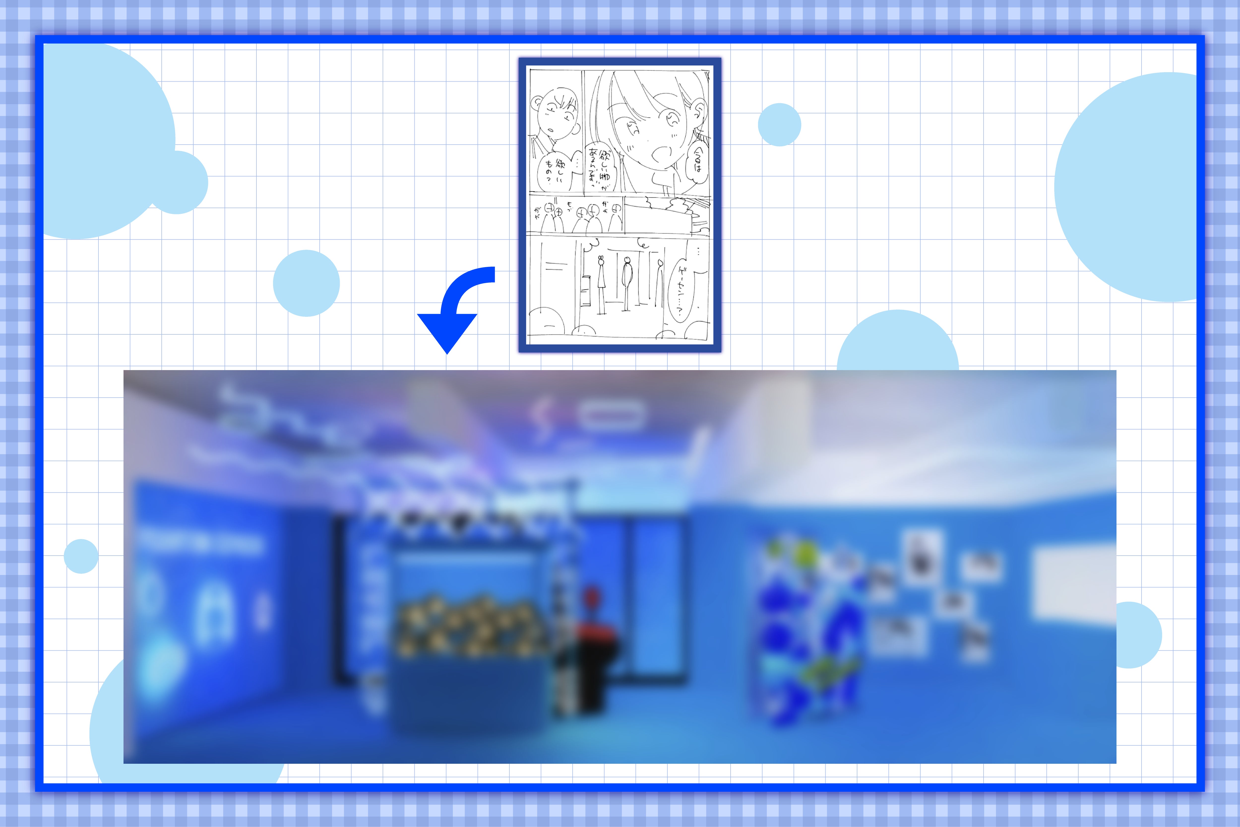 内容:今回の描き下ろし単行本での瑠夏と和也のデートを再現した、体験型の展示となっております。二人がデートに行ったゲームセンターがベースの空間となっており、クレーンゲームやプリクラ等のコンテンツをご用意しております。基本的に予約でのご案内を想定しており、支援いただいた方以外もご入場いただけます。満足度2以上のコースをご支援いただいた方は先行来場予約をいただけますので、ぜひご活用ください。