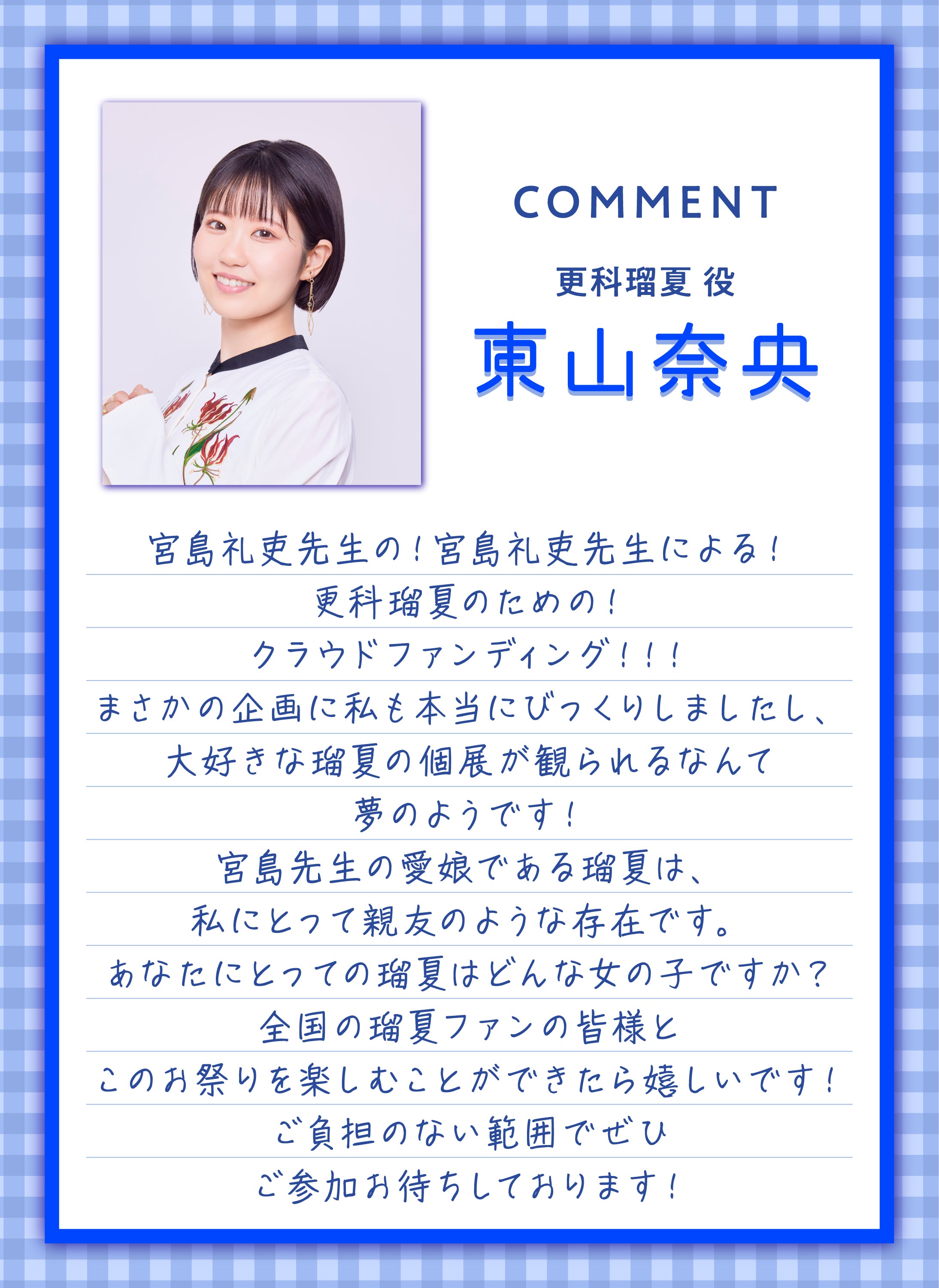 更科瑠夏役 東山奈央さんより